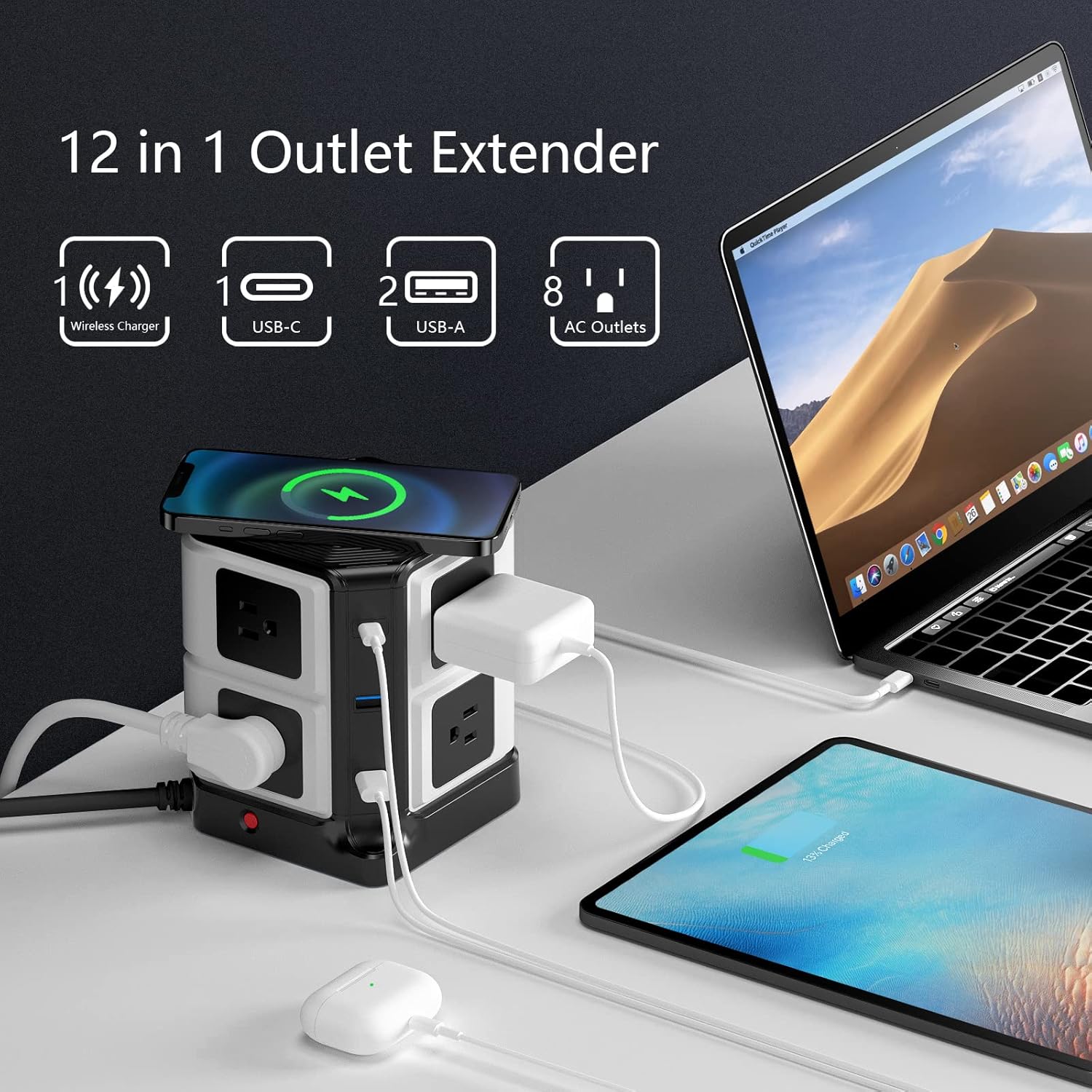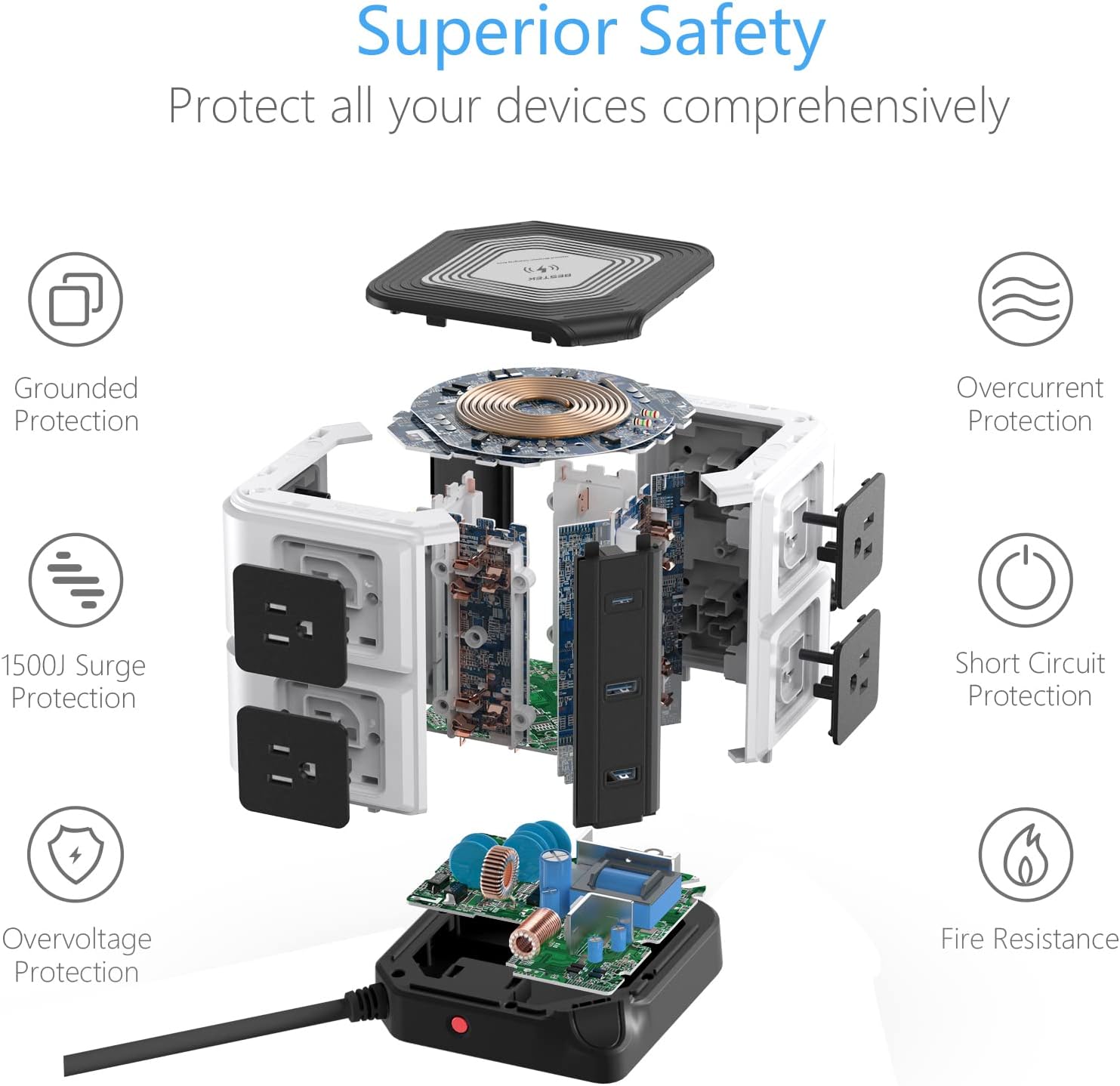 USB Power Strip with Wireless Charger BESTEK 8-Outlet Surge Protector and 40W 6-Port USB Charging Dock Station,1500 Joules,ETL Listed,Dorm Room Accessories (8AC+6USB+Wireless Charger-Black)