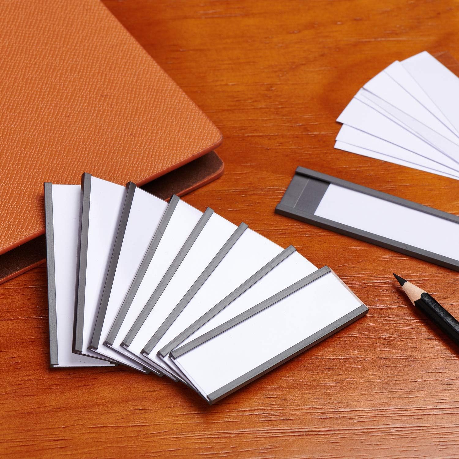 - Easy to use: write on the included paper strip, slide in the paper insert and the transparent protective film, stick the magnetic label holder to clean and flat surface, saving time and making reposition easier compared with traditional adhesive labels
