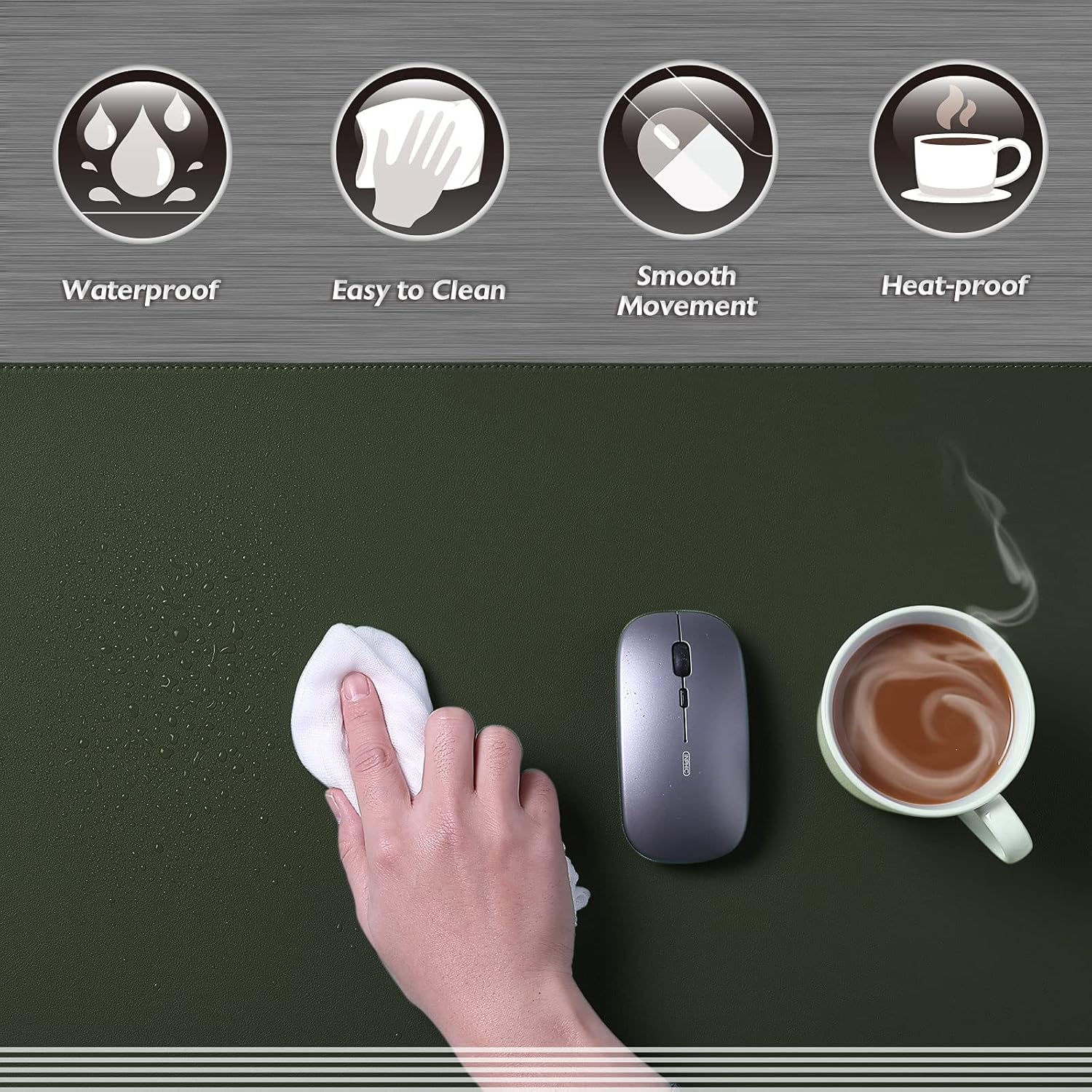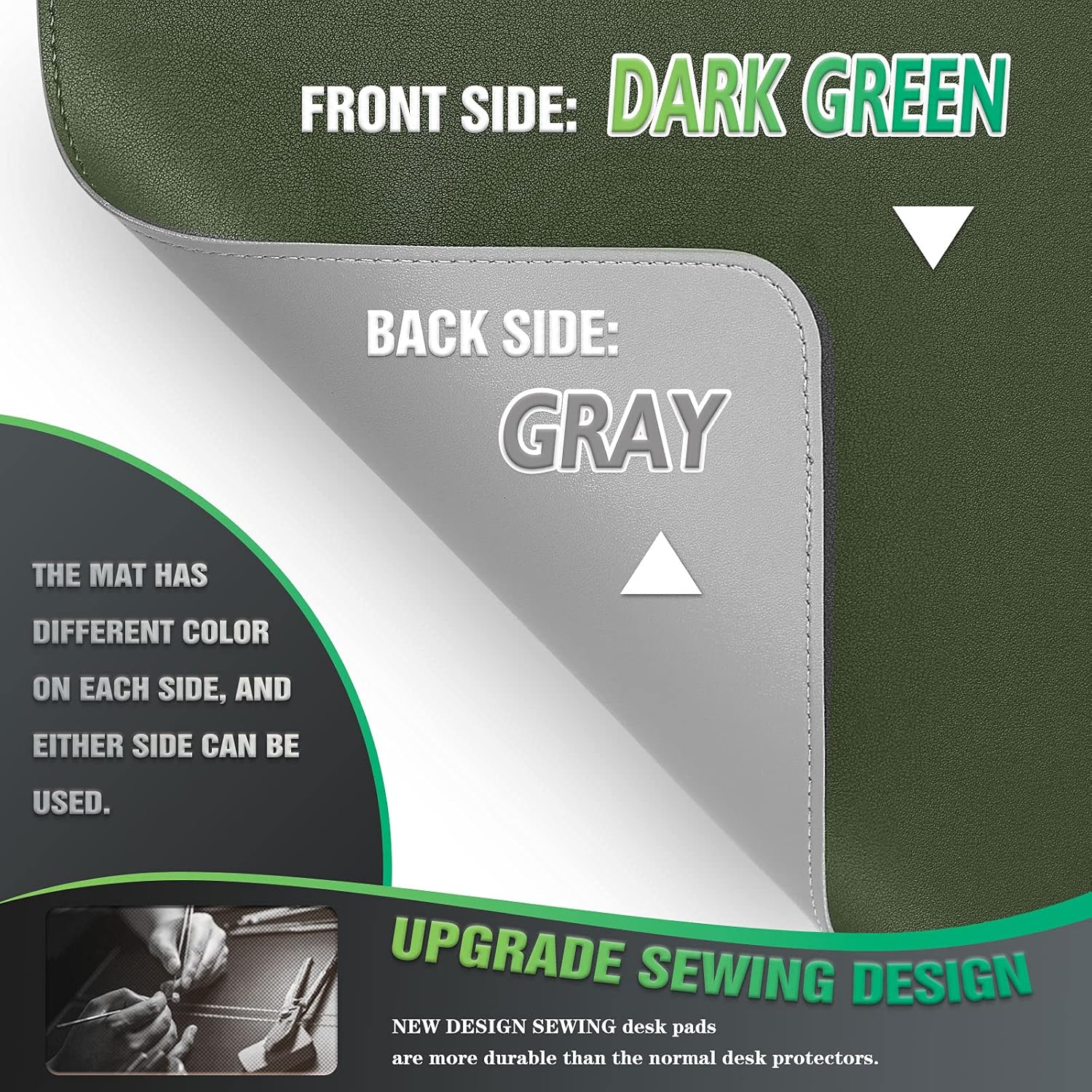 K KNODEL Desk Mat, Blotter, Dual-Sided Office Desk Pad, Waterproof Desk Mat for Desktop, Desk Blotters, PVC Leather Pad Protector (Dark Green, 23.6" x 13.8")