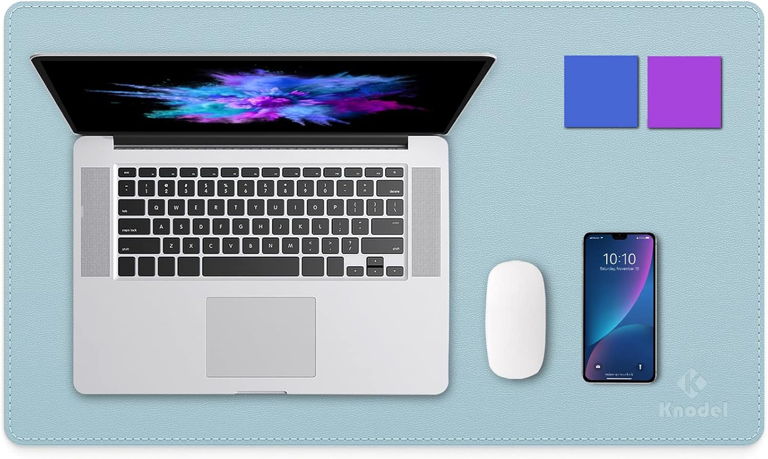 K KNODEL Desk Mat, Blotter, Dual-Sided Office Desk Pad, Waterproof Desk Mat for Desktop, Desk Blotters, PVC Leather Pad Protector (Light Blue, 23.6" x 13.8")