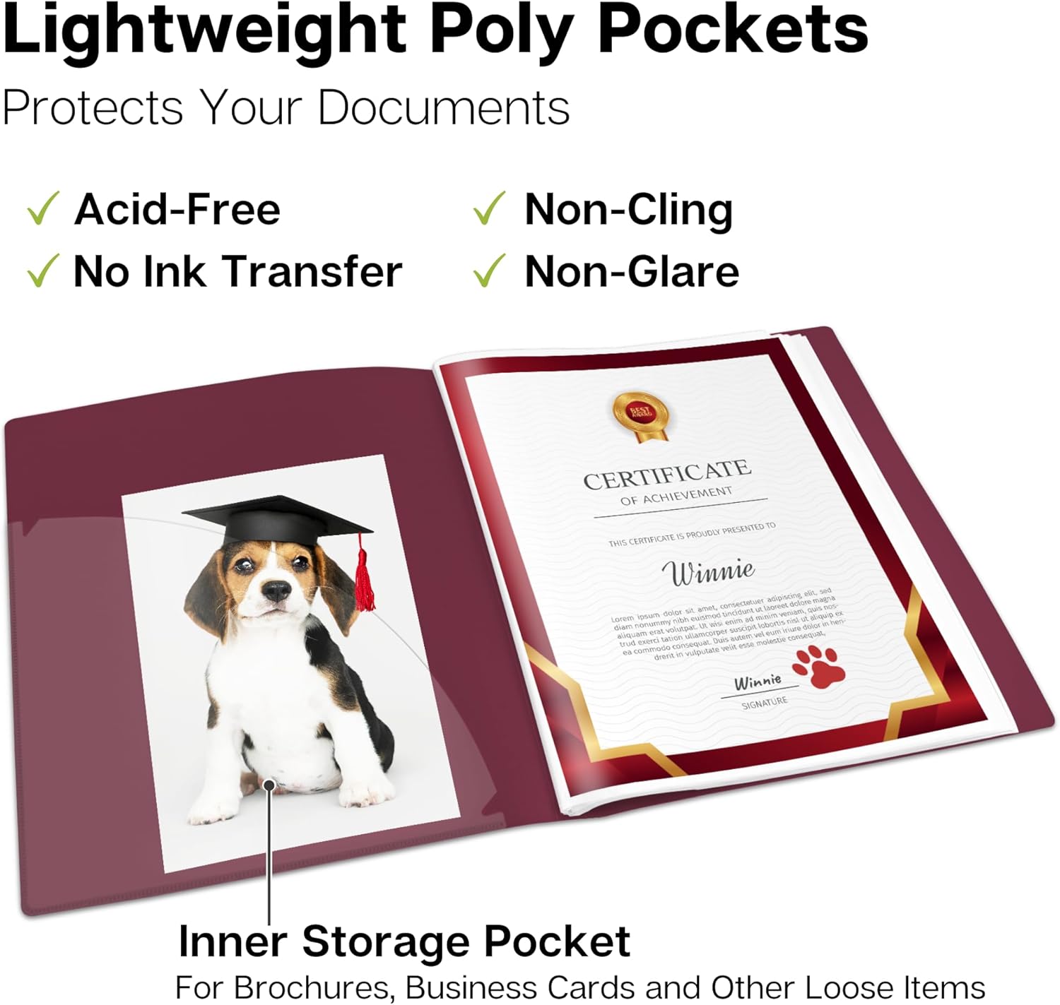 - FOR LONG TERM PROTECTION: Acid-free, PVC-free poly sleeves preserve important content without yellowing, ink transfer or copy lift-off. Also use for treasured kids art, collectibles and memorabilia.