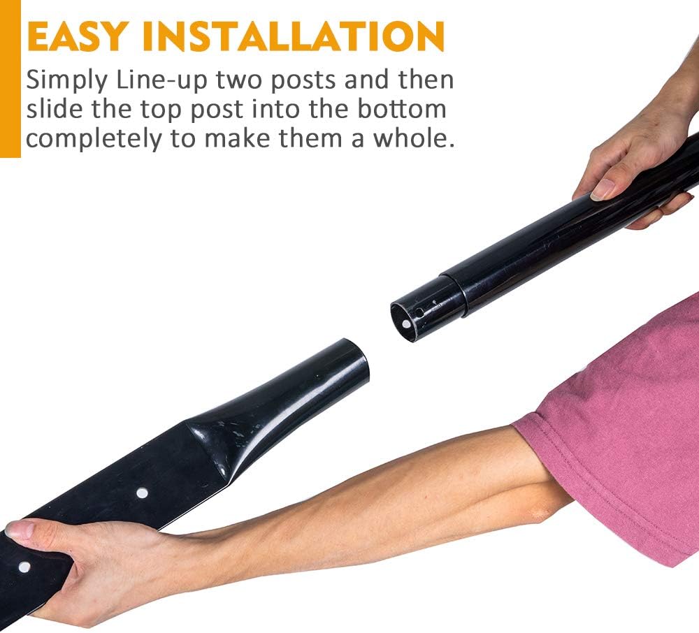 - [EASY INSTALLATION WITH NO TOOLS REQUIRED] - Two separate poles sliding into each other form the post; And insert the post into the center of the base; Predrilled holes with 2 nuts and bolts for mounting signs. The whole assembly needs zero tools