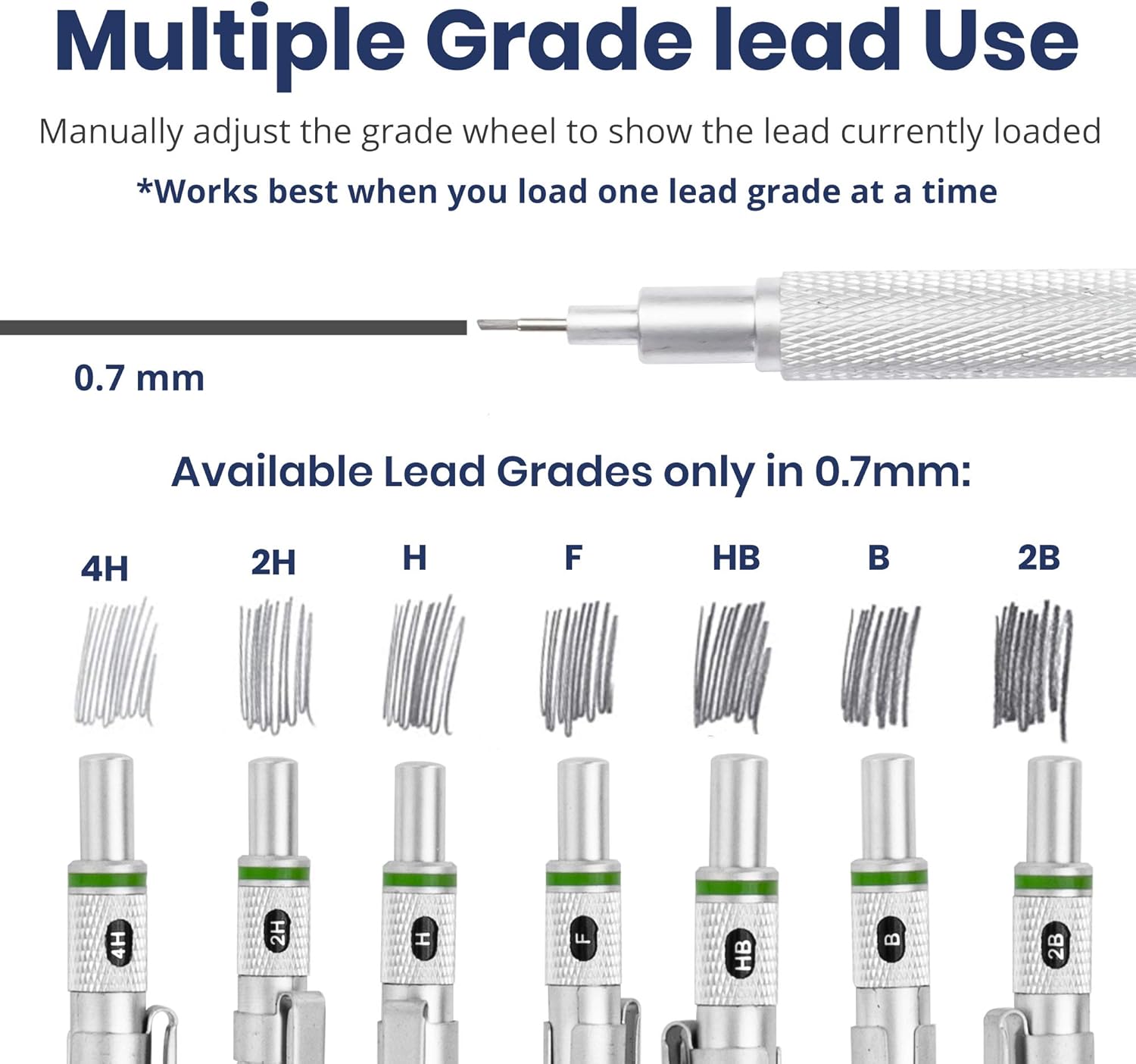 - LEAD DEGREE INDICATOR - The Chromagraph Metal Mechanical Pencil comes with a built-in lead degree indicator so you can remember the lead degree in the pencil easily. This feature makes it perfect for artists who need to work with different types of lead.