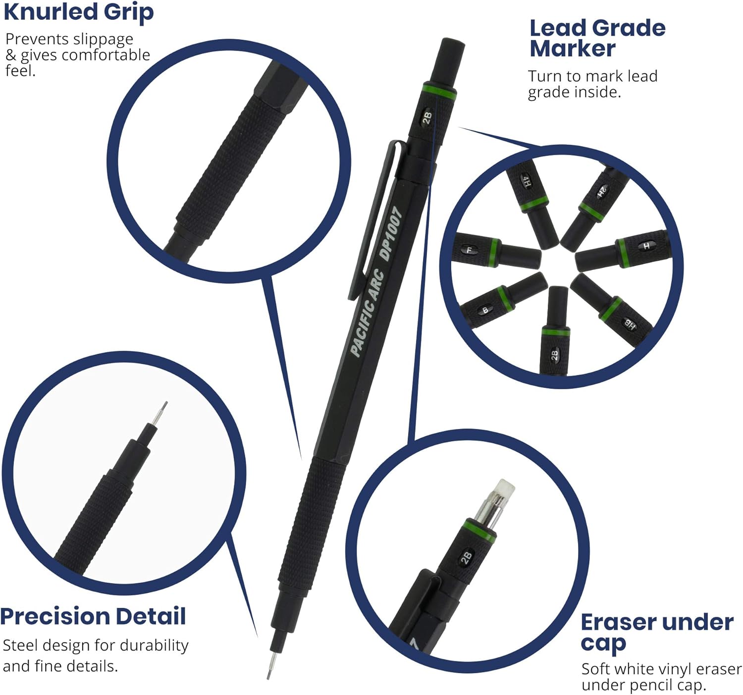 - THE PERFECT GIFT - The first step to many works of art are mechanical pencil sketches. As a result, artists often have one pencil for every lead grade needed. Streamline your loved one's toolkit with Pacific Arc's all in one adjustable pencil and help bring their art to life.