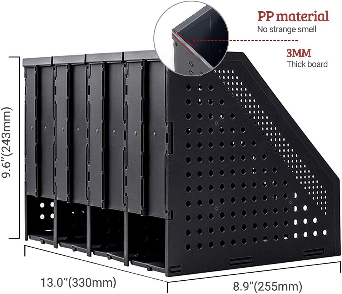 Lemical Magazine Holder 4 Vertical Compartments Collapsible Magazine File Holder Space Saving Rack Home Kitchen Desk Organizer No Need Assemble (Black)