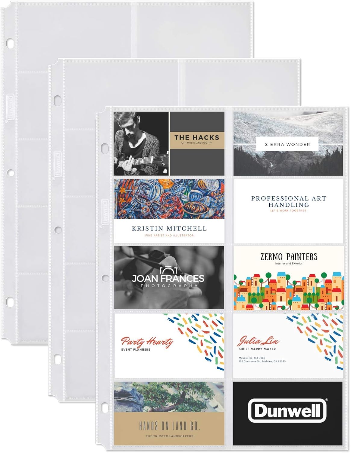 Dunwell Business Card Holder Sleeves (25 Pack for 500 Cards), Heavyweight Plastic Sheet Protect, Each Sleeve Holds 20 2x3.5 Namecards, 3-Hole Punched, Fits 3-Ring Binders