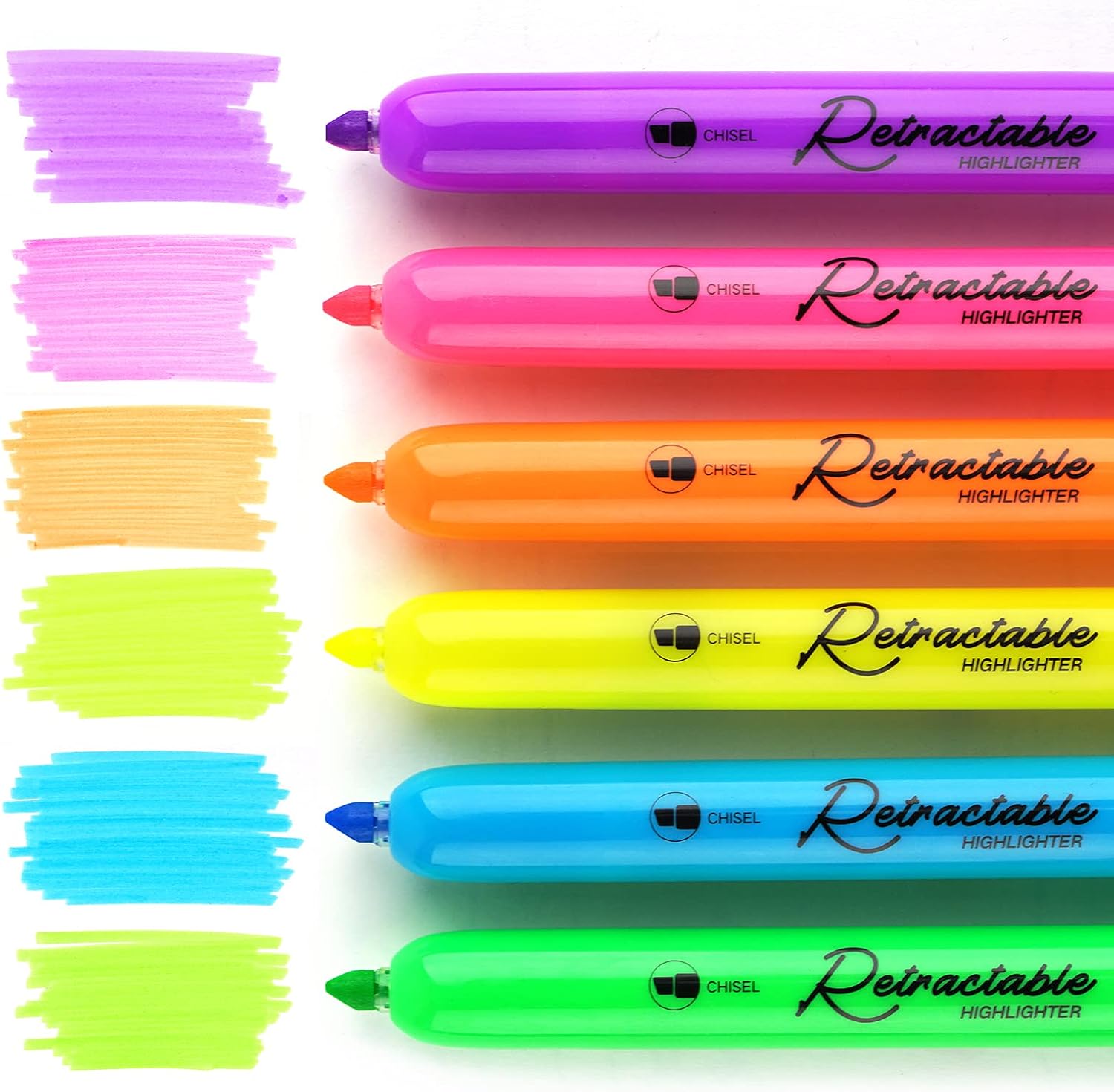 WRITECH Retractable Highlighters Assorted Colors: Chisel Tip Click Aesthetic Highlighter Marker Pens Pack Multi Colored Ink No Bleed Smear for Highlighting Journaling (6ct Neon)