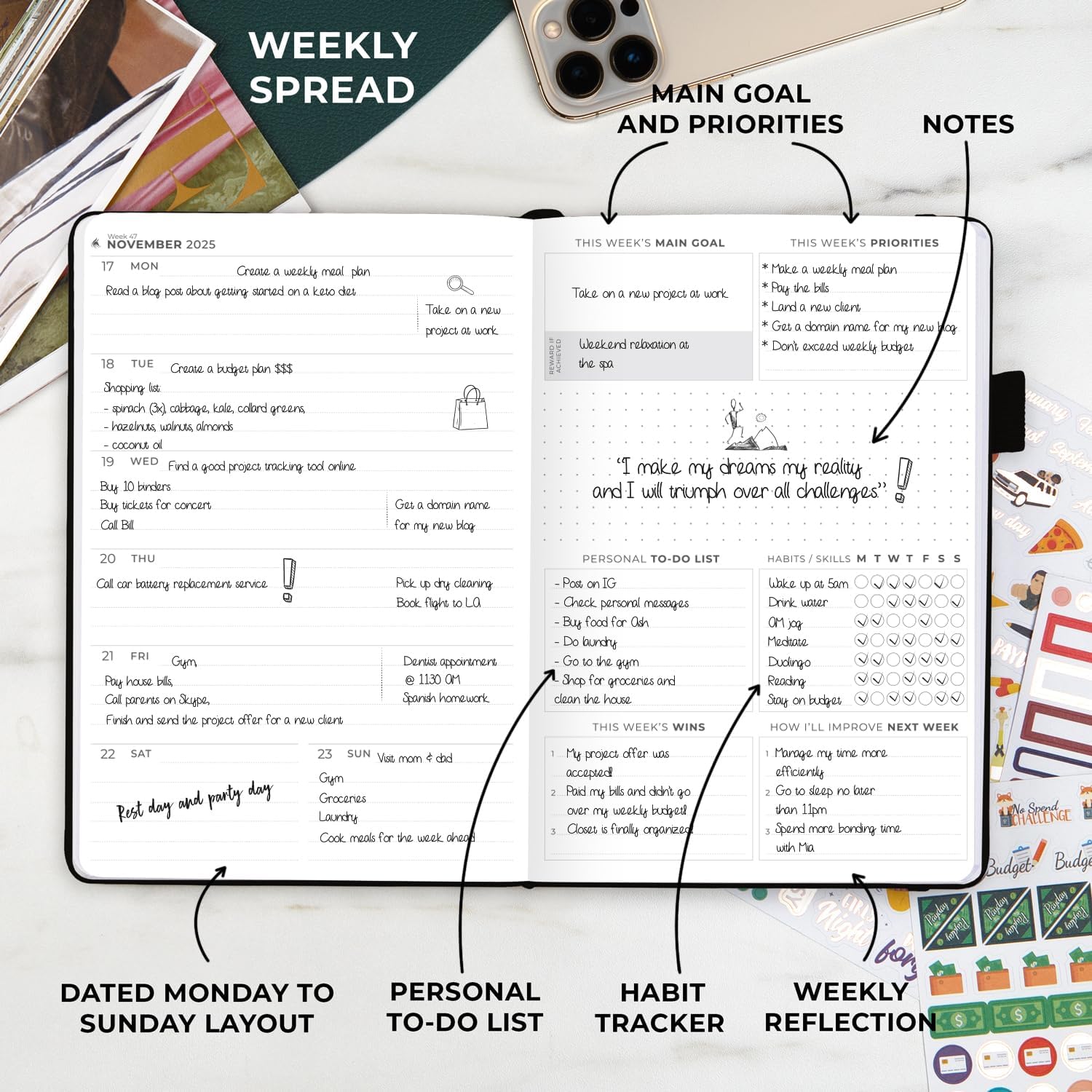 - ✓ GUARANTEE & RETURNS - We will happily exchange or refund your day planner for 2025-2026 if you are having any quality issues or if, for any reason, you are not completely satisfied with your goal setting planner 2025.