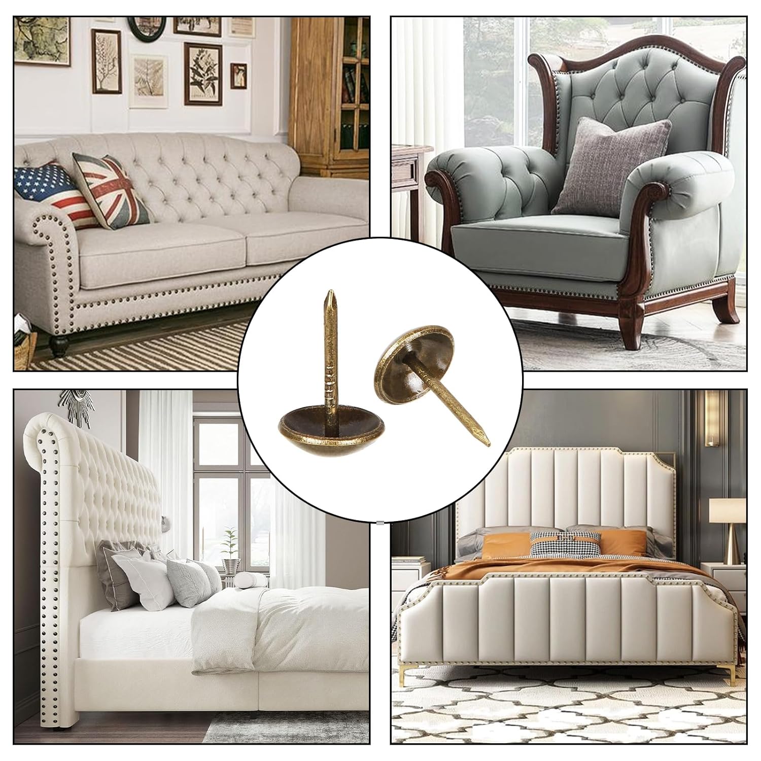 - 500Pack Antique Upholstery Decorative Tacks: Package includes 500 pieces of upholstery decor tacks, made of hand-wrought wrought iron with a smooth antique brass finish surface, idea for fastening upholstery material to furniture or directly used into leather sofa for trim