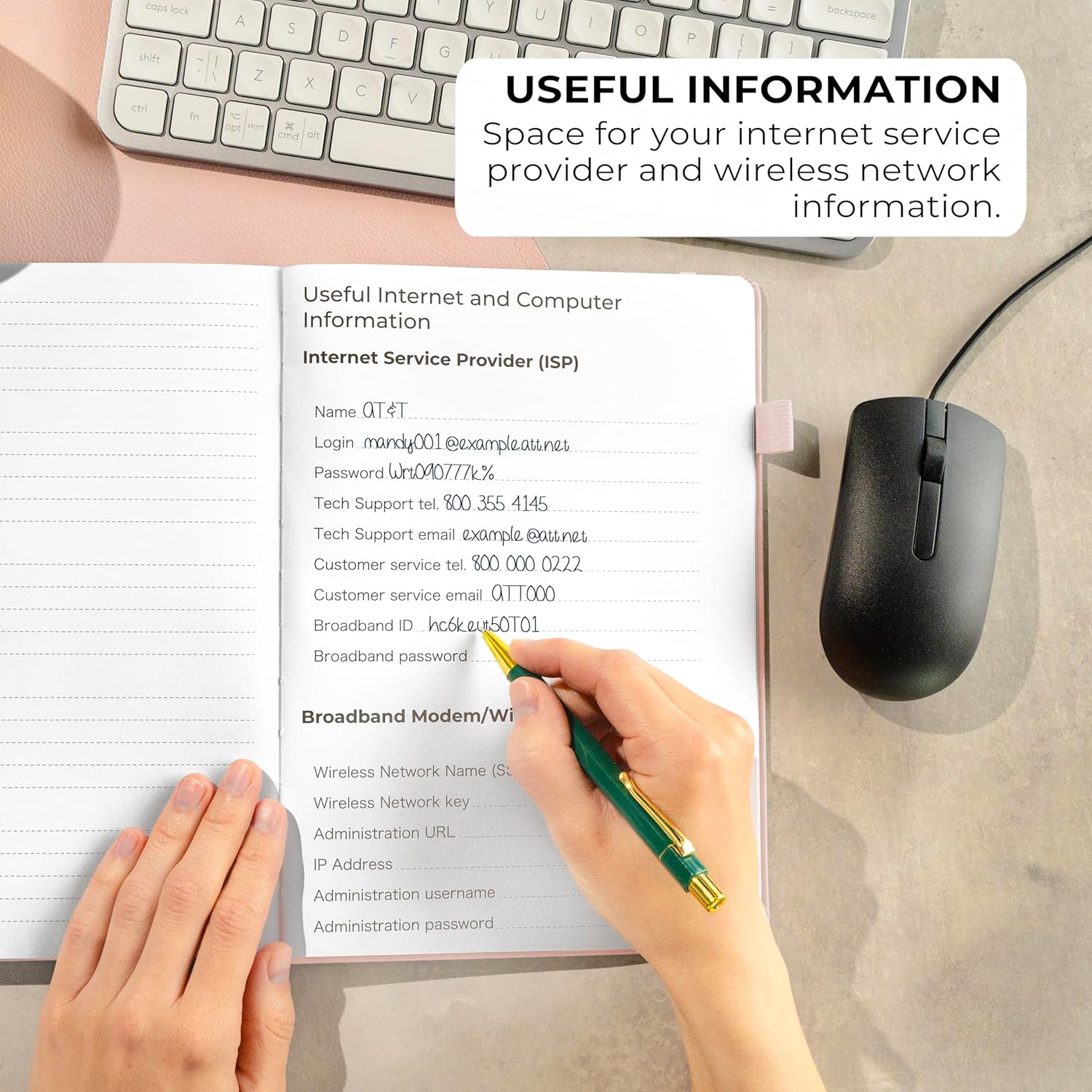 - LARGE SIZE & PREMIUM QUALITY - This internet address and password logbook with tabs comes in large size (7x10 inches). The password notebook has an eco-leahter hardcover, elastic band, pen loop, bookmark, pocket for notes, and thick 120gsm paper.