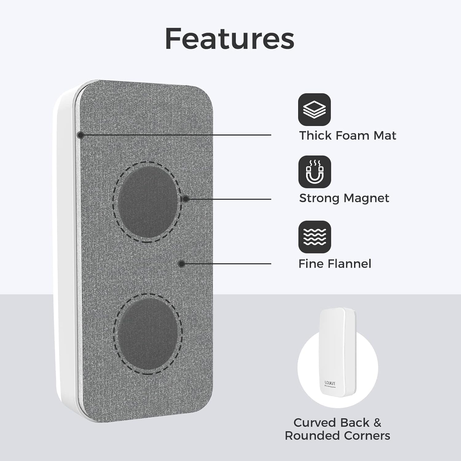 loukin Magnetic Dry Erase Eraser, Whiteboard Eraser, Glass Board Remover, 3.4 fl oz Whiteboard Cleaner Included, for Classroom, Home and Office Use (White)