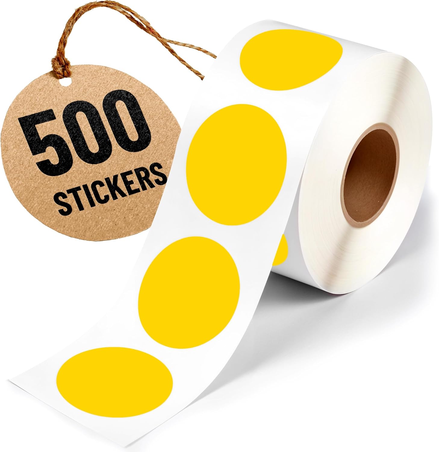Performore 2 Inch Dot Matte Yellow Color Code Labels for Color Coding and Organization, Round Coloured Easy to Peel, Strong Self Adhesive Dot Stickers, 500 Stickers Per Roll