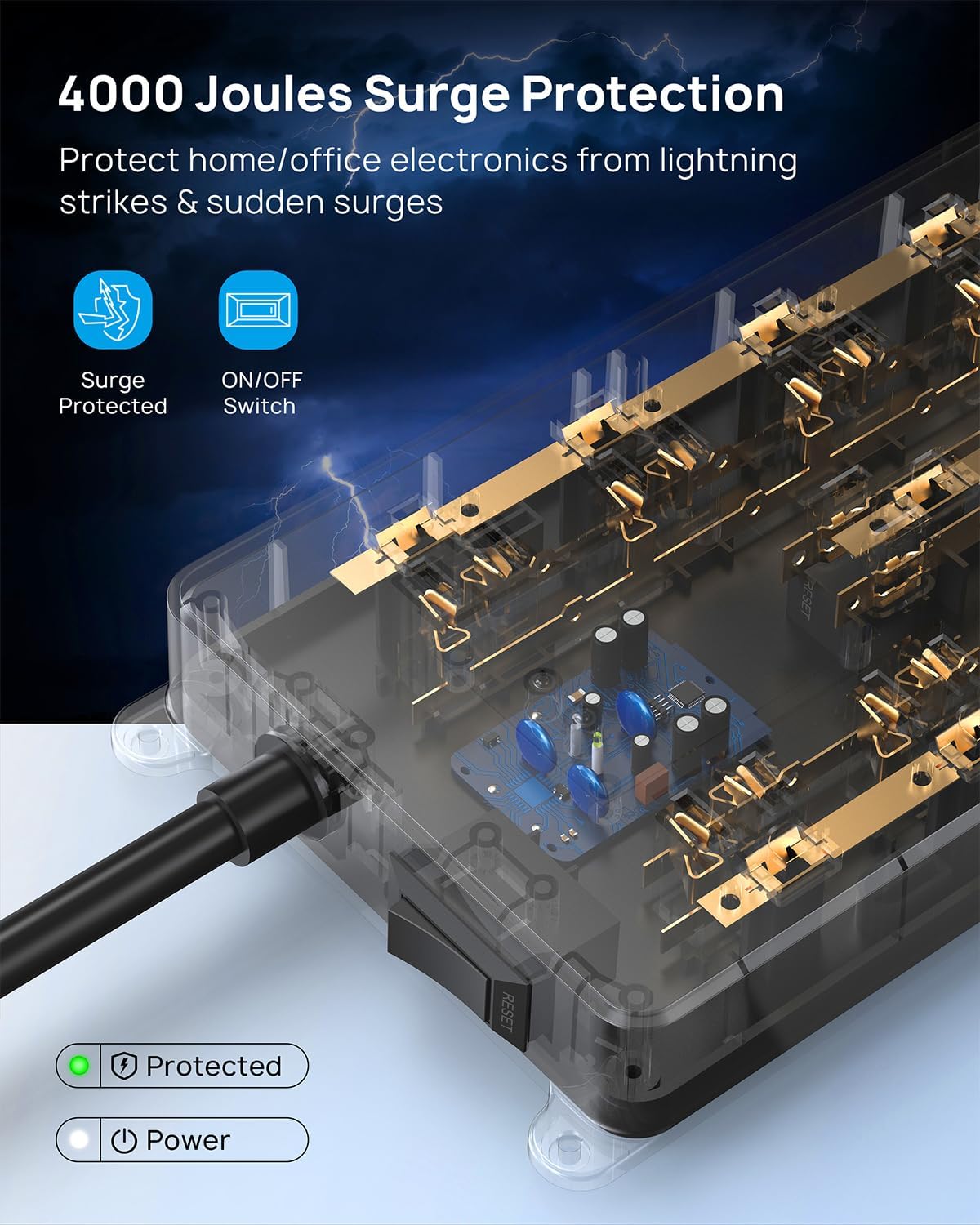 - 【Safety Certified】This power strip with usb ports is ETL certified and combines 4000J surge protection, overload protection, overcurrent protection, short circuit protection, and a 1382℉ fireproof shell to provide comprehensive safety protection for your tablet, TV, mobile phone, and other electronic devices against potentially damaging power disturbances.