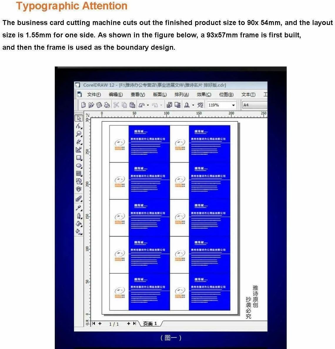 - Industrial-Grade Precision Cutting: This business card cutter delivers flawless 90x54mm (3.5"x2") cards with razor-sharp accuracy. The 9-blade system processes A4 sheets into 10 cards in just 3 passes, handling 100 cards in 2-3 minutes. All-metal construction ensures perfect right-angle cuts on coated cardstock up to 250g—ideal for premium business cards, loyalty cards, or tags.