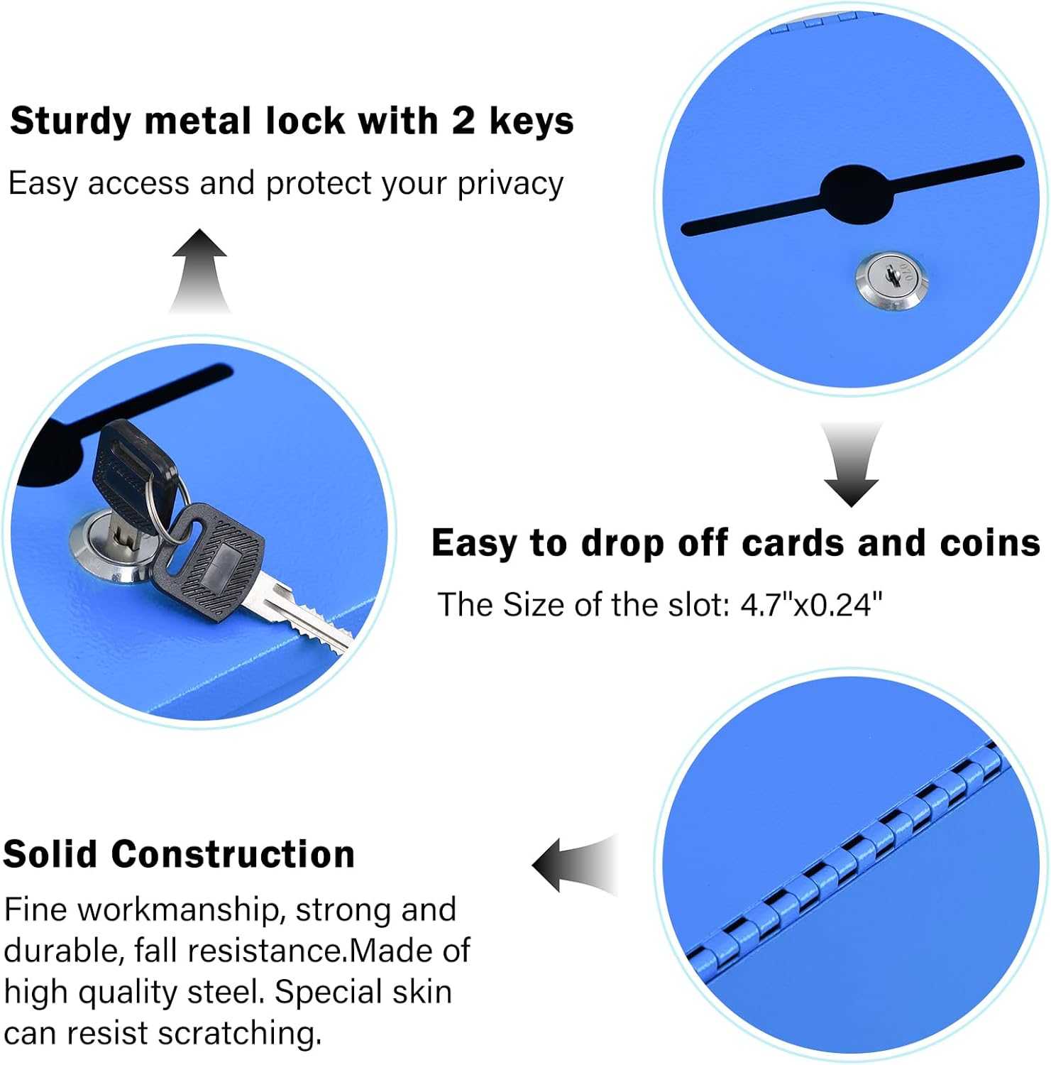 xydled Wall Mounted Ballot & Donation Box with 50 Suggestion Cards, Metal Suggestion Collection Box with Key Lock, Blue, 8.7"x 5.9"x7.1"