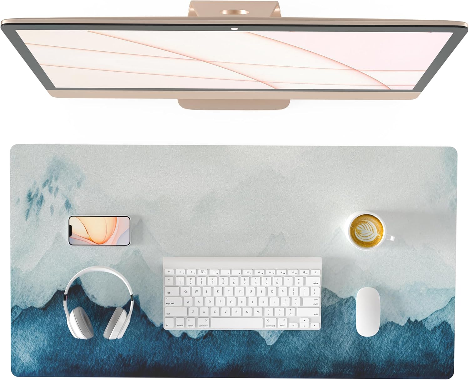 QIYI Desk Pad Large Keyboard and Mouse Pad for Laptop Computer, PU Leather Desk Cover Protector, Desk Décor Accessories for Office Home Work Writing Gaming 31.5" x 15.7" - Watercolor Mountain