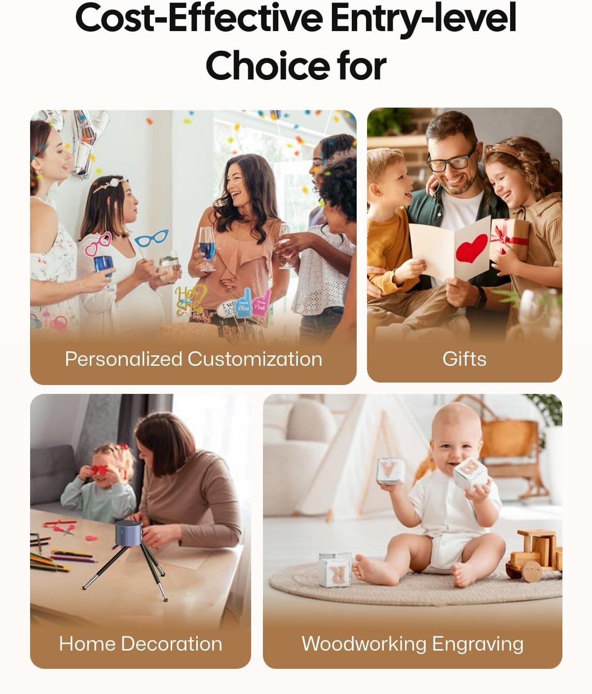 - Completely Friendly for Beginners: 100% tested on 10+ materials. Get free engraving templates (animals/festivals, etc.) + 24/7 exclusive after-sales support for beginners.