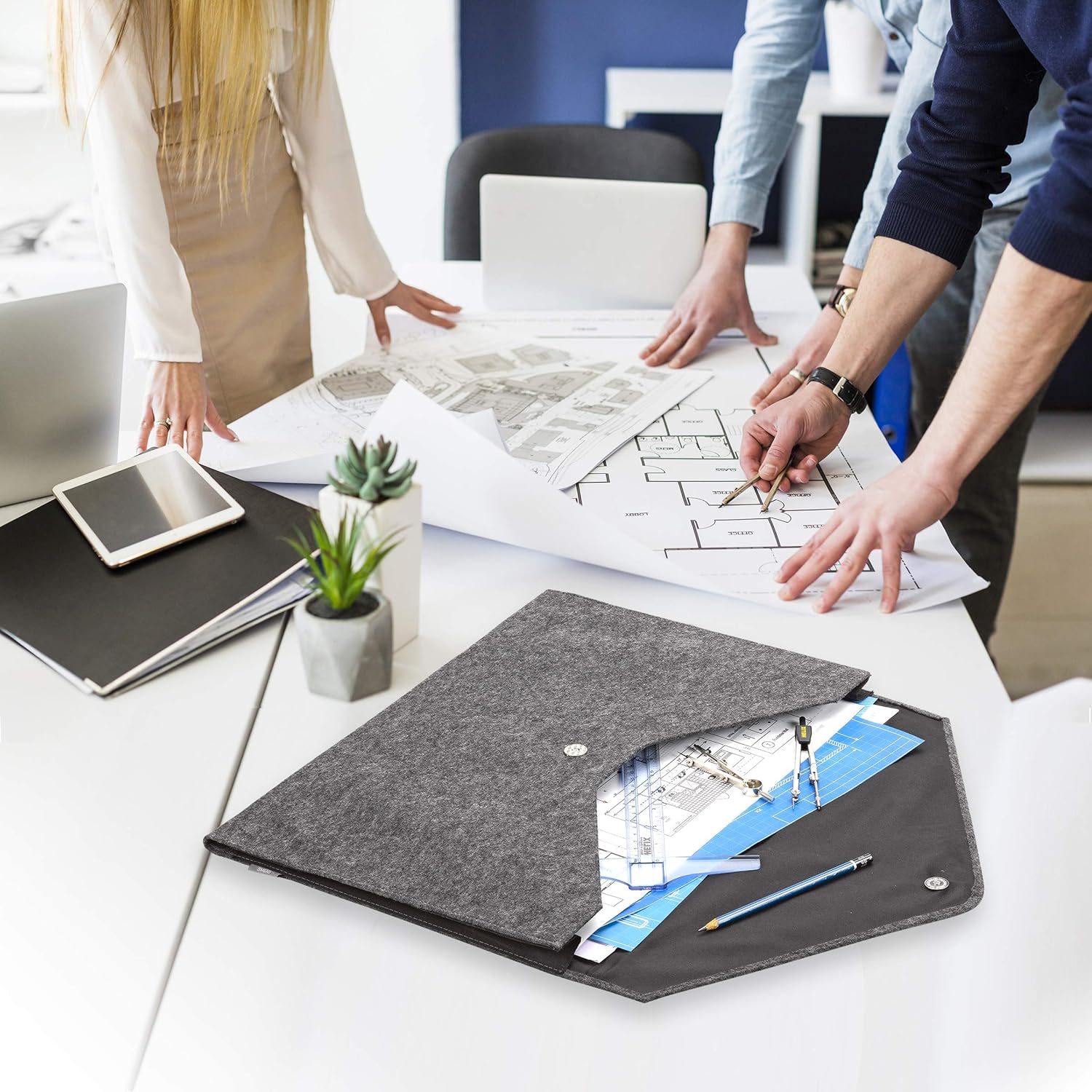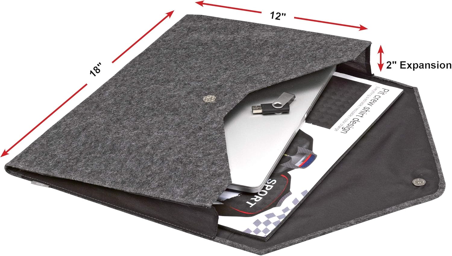- Includes 1 tabloid size (12” H x 18” W) cloth expanding file with a single pocket that has a full expansion of 2" and a magnetic closure to contain your essentials for client meetings