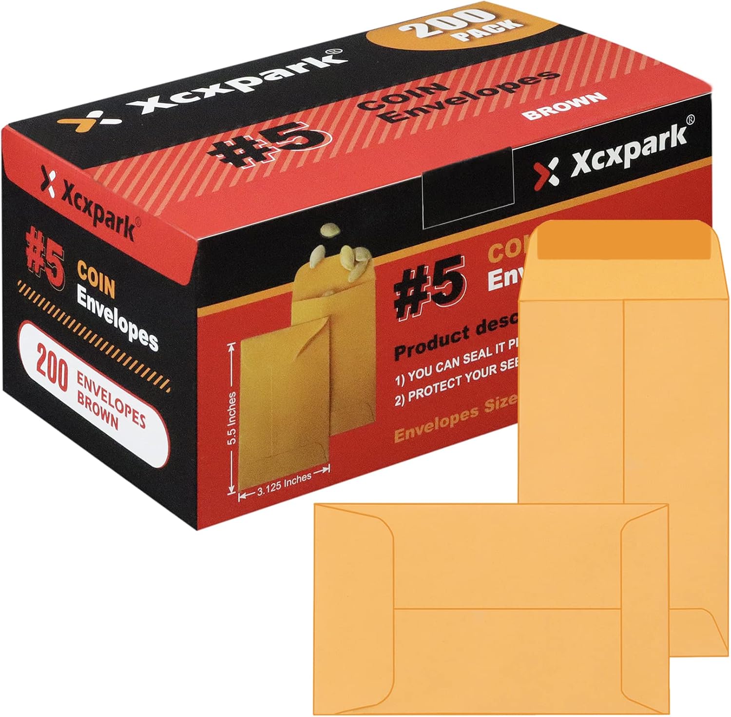 200PCS #5 Coin Envelopes 3.125x5.5 inches Brown Kraft Envelopes Classic Small Parts Gummed Flap for Coins, Cash, Credit Cards, Seeds