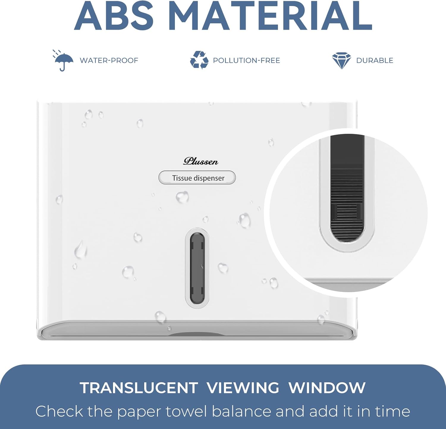 Paper Towel Dispenser Wall Mount, Adhesive No Drilling Multifold Trifold C Fold Commercial Hand Towel Dispenser,White