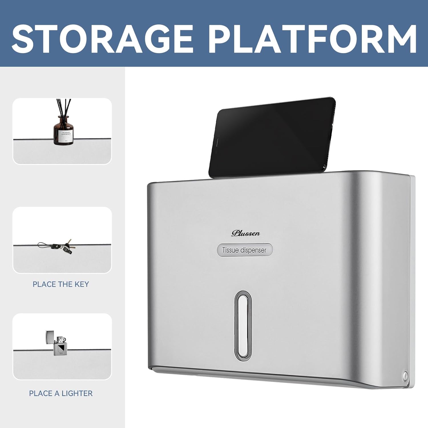 Paper Towel Dispenser Wall Mount, Adhesive No Drilling Multifold Trifold C Fold Commercial Hand Towel Dispenser,Silver