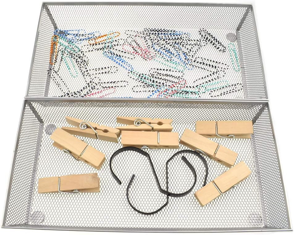 HAHIYO Stackable Mesh Tray Cup 12 x 6 x 2 inches Sturdy Container for Desk Drawer Organizer Collection for Home Office School kitchen Soft Foam Feet No Sharp Edges 1 Pack Silver