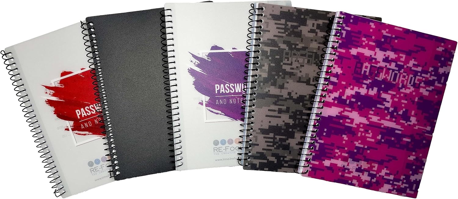 - ALPHABETICAL TABS - Password journal with alphabetical tab system to easily record & find passwords you need. Five different colors so that you don't mix yours up. Mini version comes in Red, Purple, Black, OD Camouflage and Pink Camouflage.
