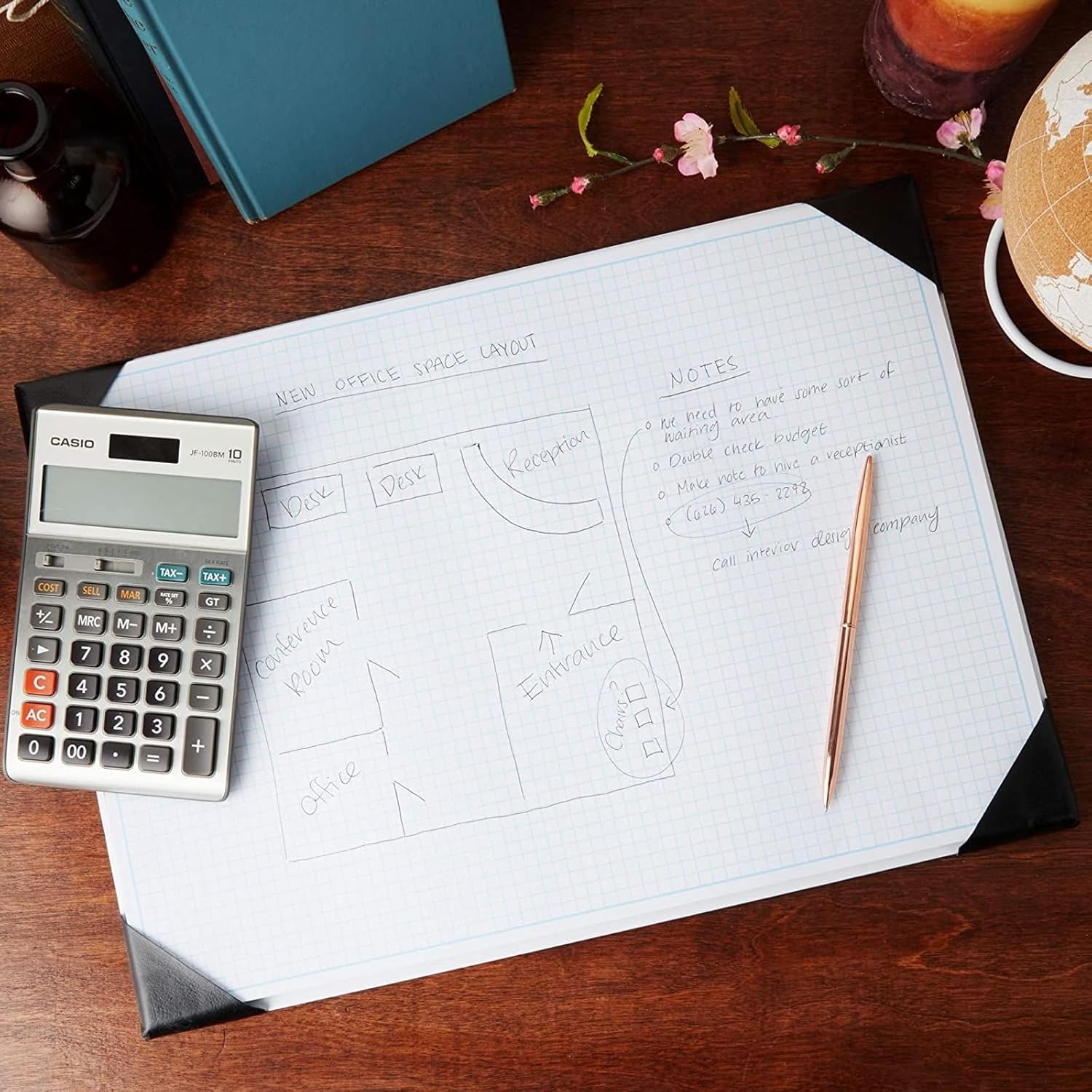 Stockroom Plus Desk Blotter Graph Paper Pad - 17 x 12 in, 50-Sheet White Refillable Desk Pad Mat - Large Notepad for Sketching, Notes & Doodles
