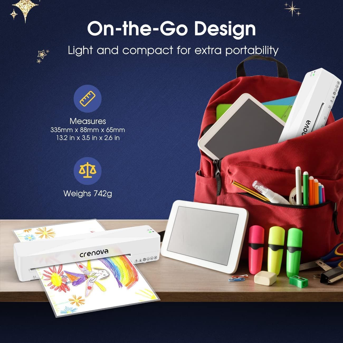 - 🆗Fast Warm-up, Vivid Color:Crenove laminating machine only takes 1-2 minutes to preheat. It compatible with 10pcs 2 x 80-125mic A6 laminating pouches. Crenova preserves your precious photos' colors, keeping memories alive.