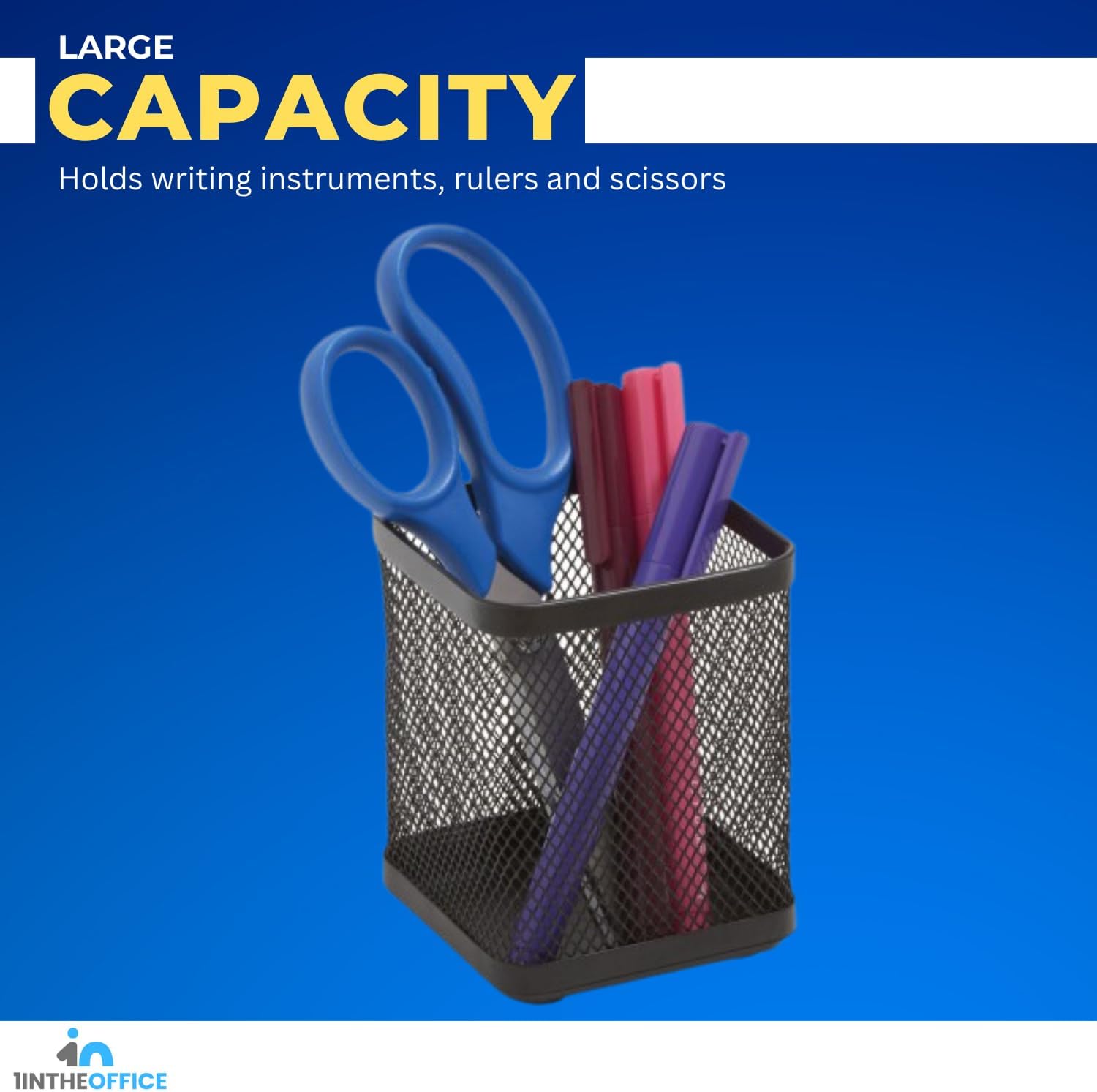 - The matte black finish of this metal mesh pen holder adds a modern touch to any office or home setting.