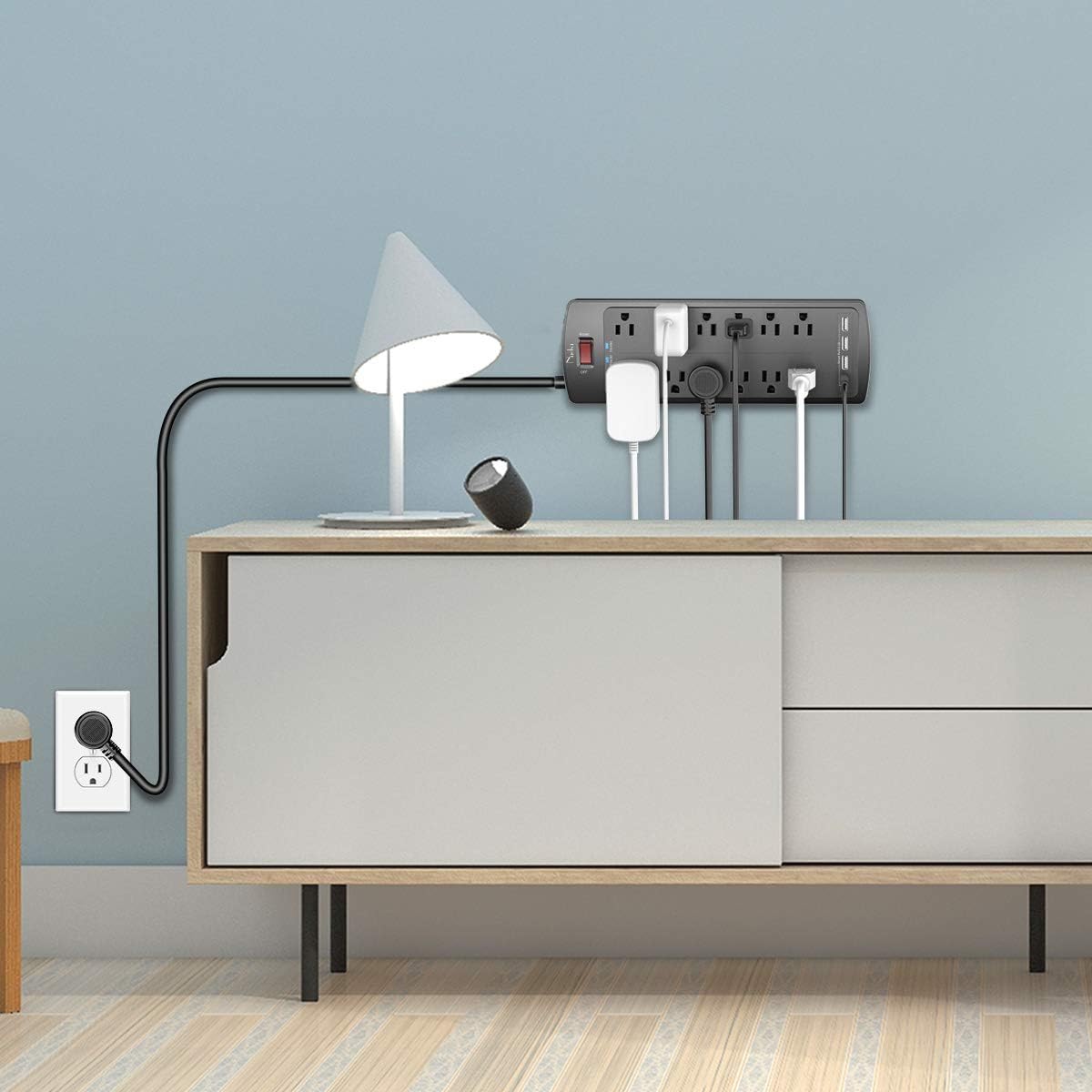 - 【Power Strip with 12AC outlets & 4 USB】- Power strip surge protector with 12AC outlets & 4 USB charging ports (5V/3.4A, 17W), 6 Feet Heavy Duty extension cord(1875W/15A), surge protector (2700 Joules) with overload protection protects against spikes and fluctuations.
