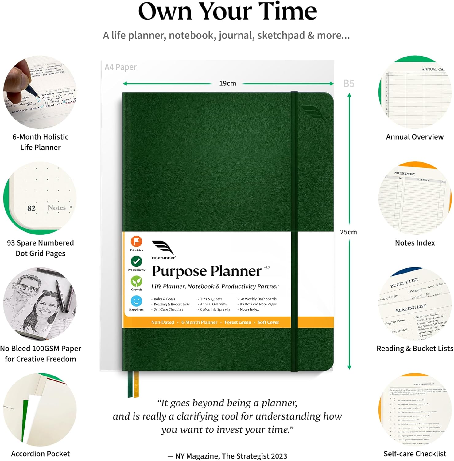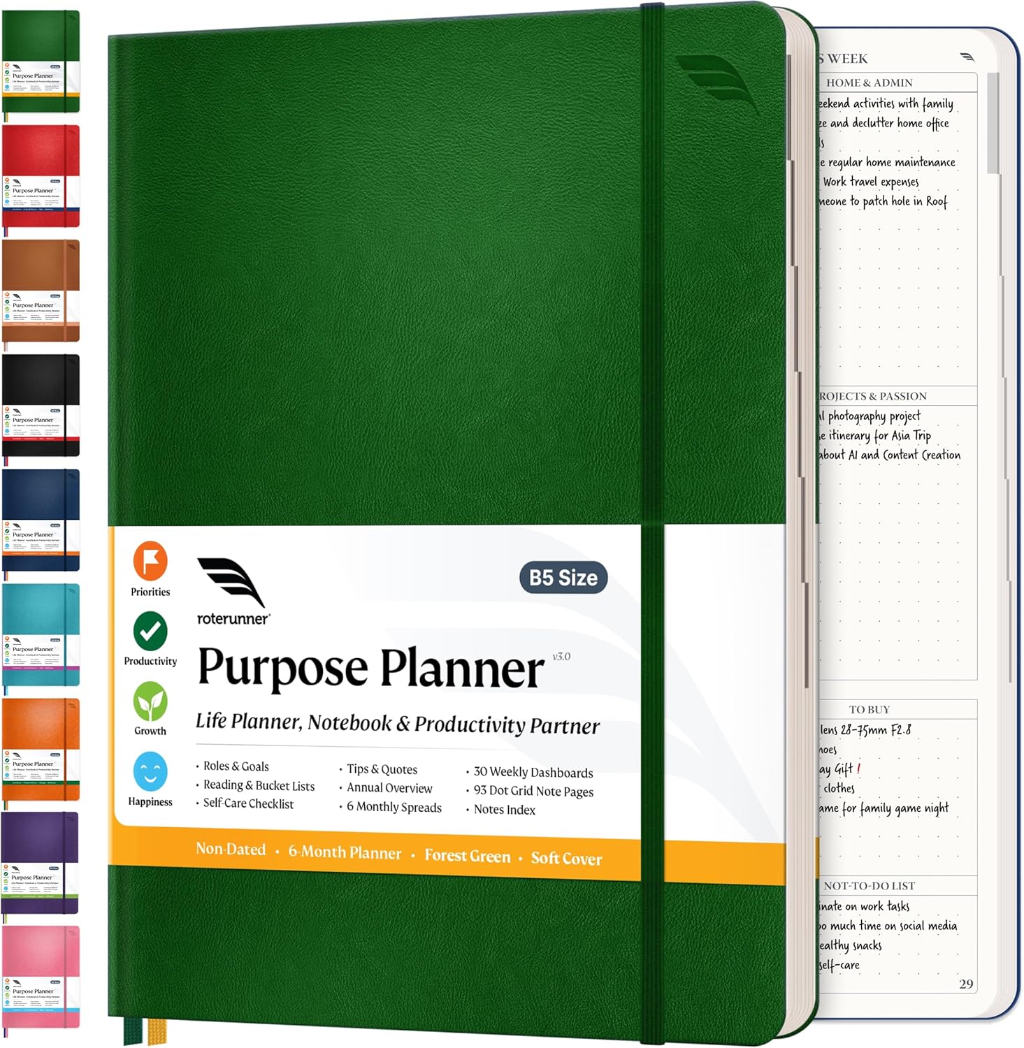 Roterunner Purpose Planner Notebook B5 7.5”x9.8” Undated Planner 2025 Daily Weekly and Monthly Productivity Goal Setting Tool for Work Home ADHD Planner for Adults Self Care Journal