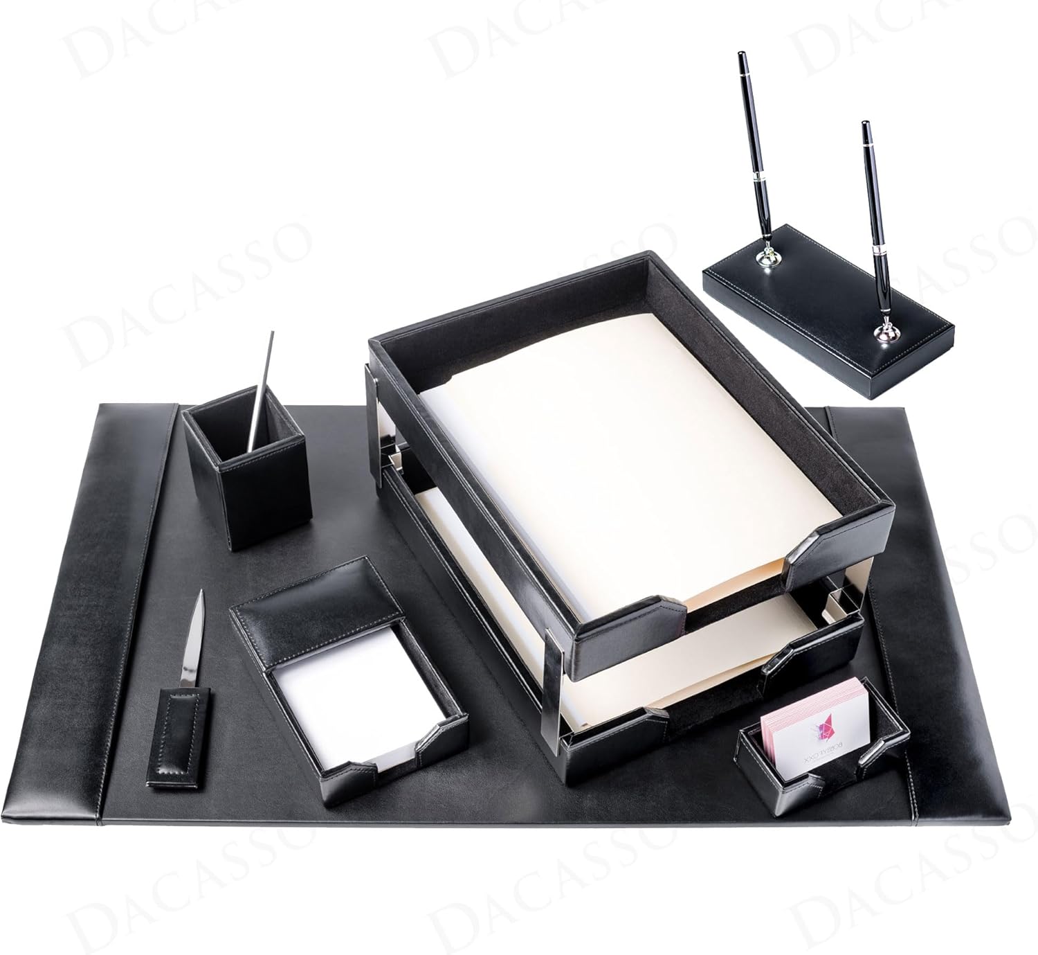 Dacasso Black Bonded Leather Luxury 9 Piece Desk Set - Blotter Pad & Desk Mat Organization Essentials - Executive Decor and Surface Protector