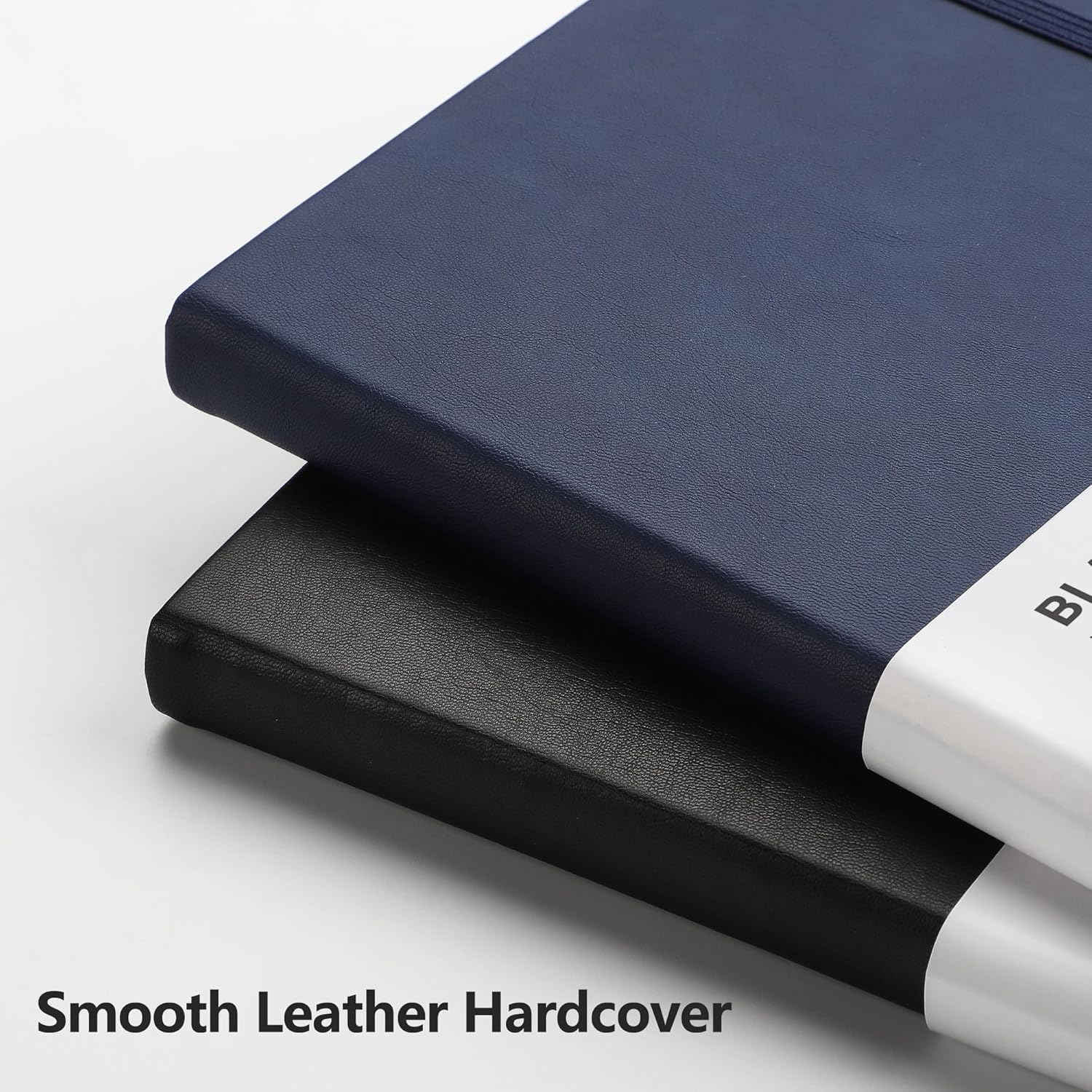 RETTACY Blank Journal Notebook, 2-Pack, 192 Pages per Pack, A5 Medium Size (5.7'' x 8.3''), Leather Hardcover, 100 GSM Thick Paper, for Sketching, Drawing, Painting (Black & Navy Blue)