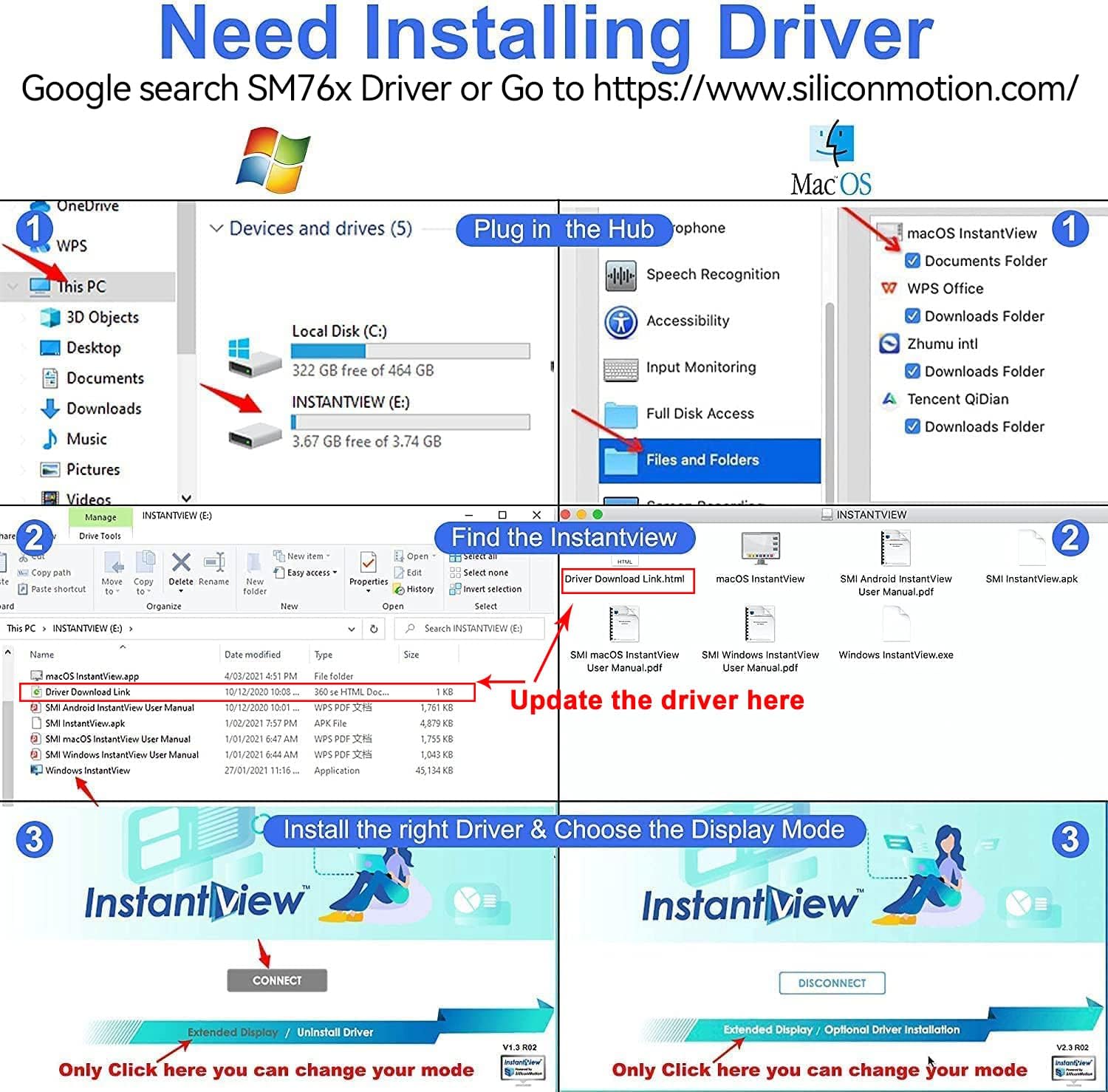 - THIS HUB REQUIRES TO INSTALL DRIVER: Please connect the usb 3 docking station and open the "INSTANTVIEW", Check the instructions on the USB flash drive. PLEASE CHECK THE USER MANUAL for your reference. An ideal HDMI dual monitor adapter for MacBook Air/Pro M1 M1 pro M2, iMac/iMac Pro, PS4 Pro, surface Pro, Chromebook Pixel, Dell, ASUS, HP, Lenovo, and more Thunderbolt 3/4 or USB 3.0 laptops