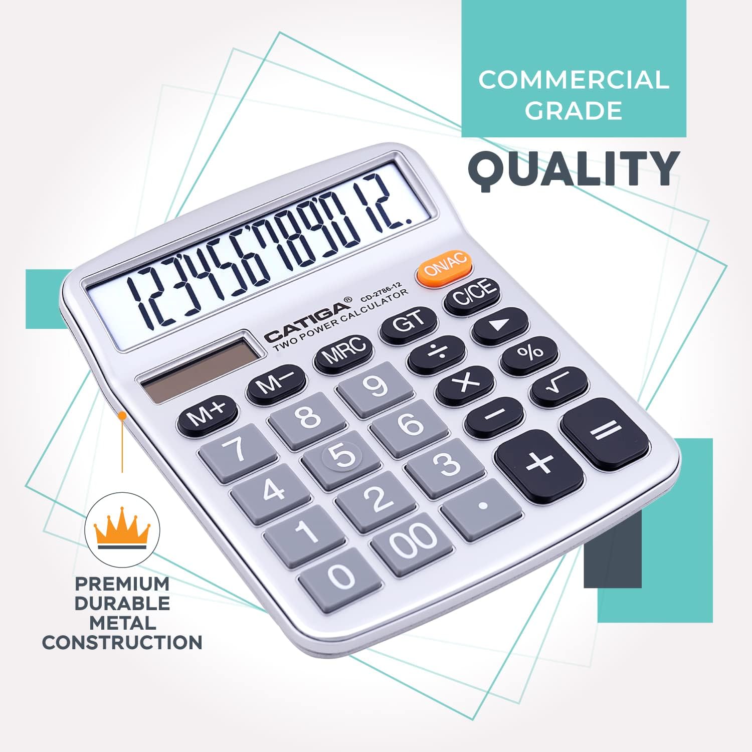 CATIGA 12 Digits Desktop Calculator with Large LCD Display, Dual Solar Power and Battery, Standard Function for Office, Home, School, CD-2786