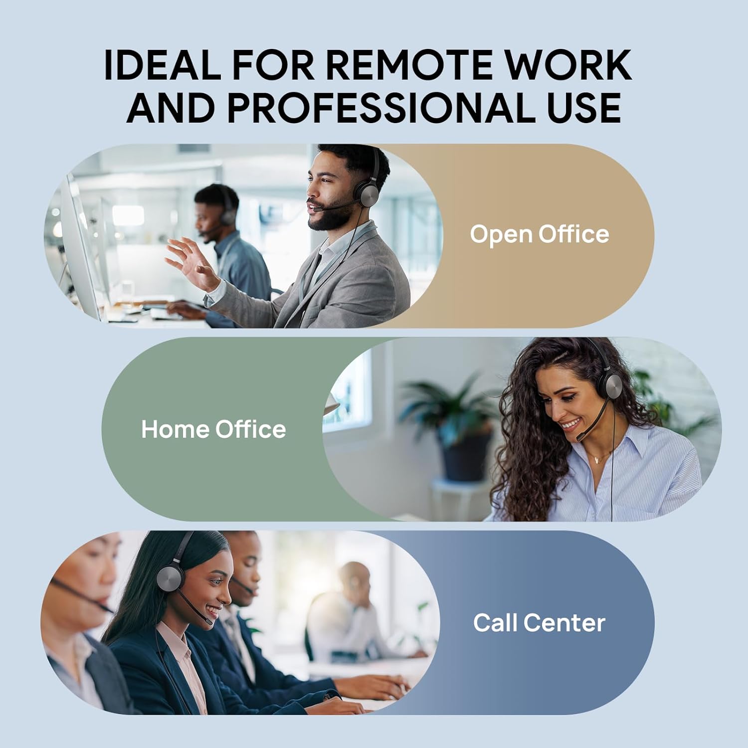 - COMFORTABLE WEARING –Designed for all day use with breathable Plush protein leather cushions, to prevent hot and sweaty. Adjust the headband for a perfect fit, keeps you connected and stable.