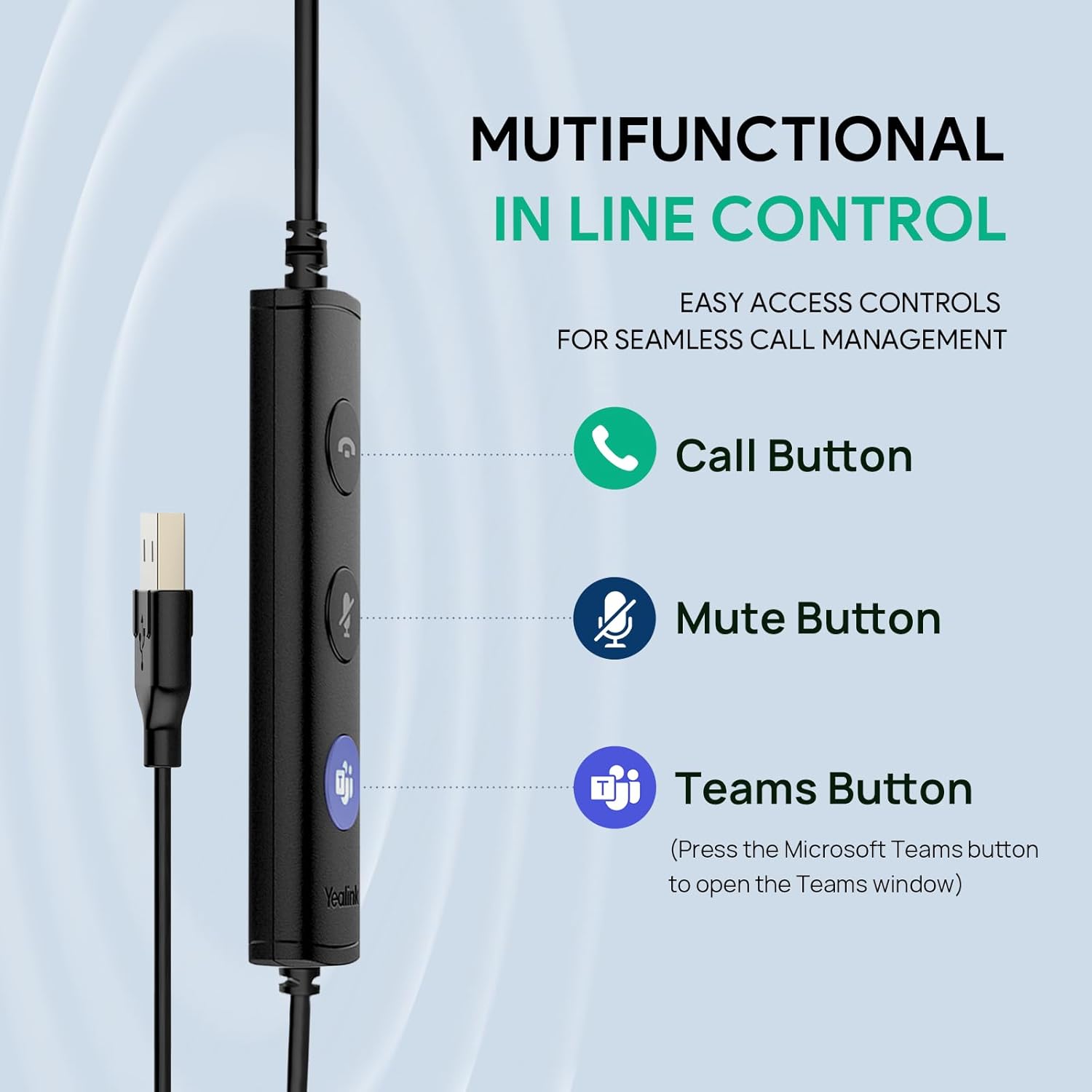 Yealink UH36 Professional USB Headset, Wired Headphones for Work Calls and Music, Headset with Noise Cancelling Mic for Computer PC Laptop(for Teams Certified, Mono,3.5mm Jack/USB Connection)