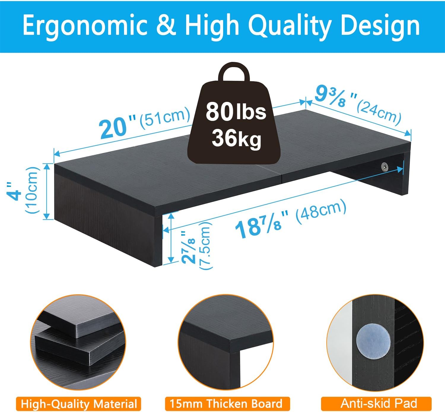 TEAMIX 20 Inch Monitor Stand Riser, Black Desktop Stand for PC/TV/Laptop/Printer, Wood Monitor Riser with Storage, Computer Stand Keyboard Organizer