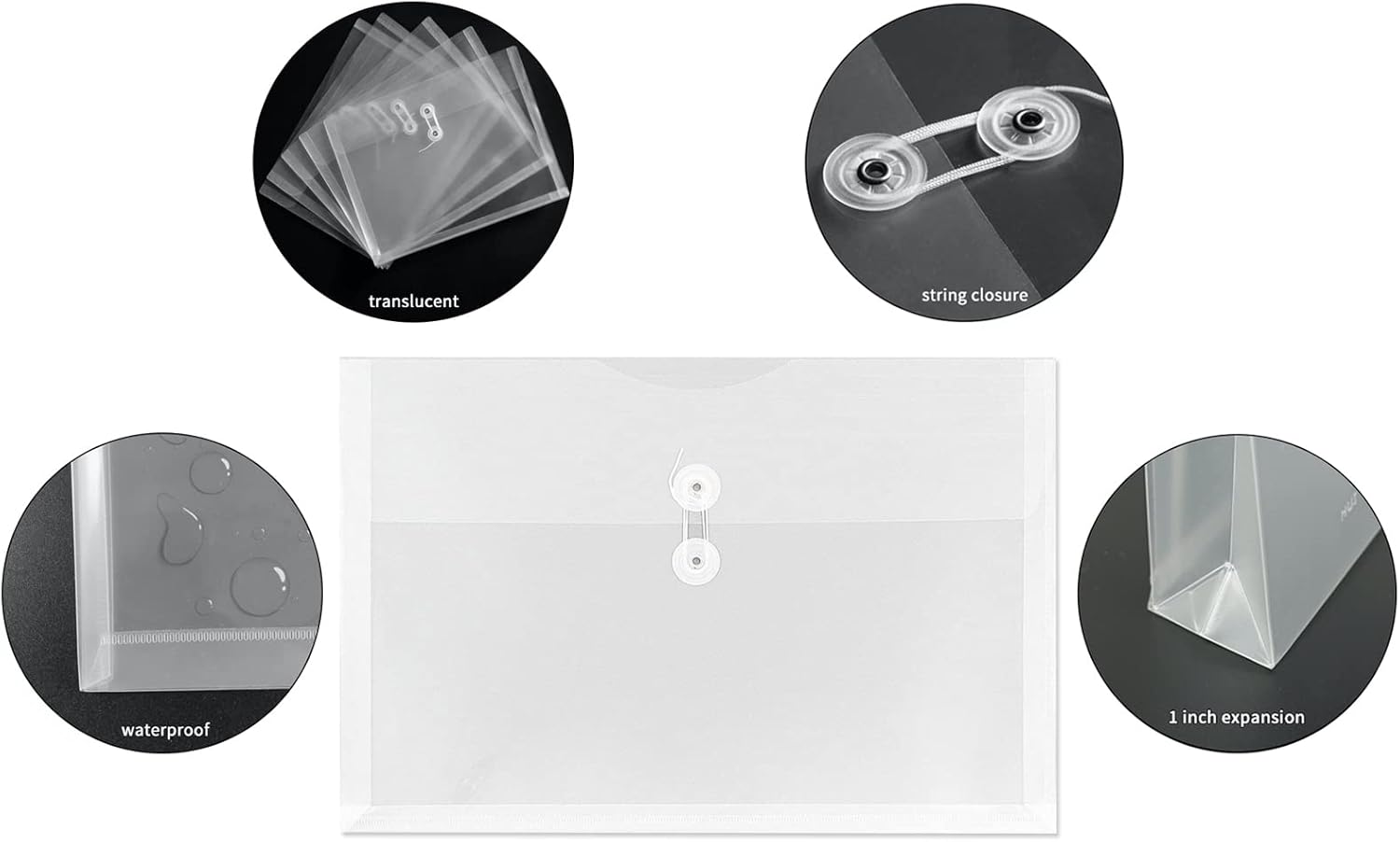Yoeejob Plastic Envelopes Legal Size with String Tie Closure, Clear Poly Envelope Expandable Plastic Folders, Document Paper File Organizer for Home Work Office, 24 Pack, White