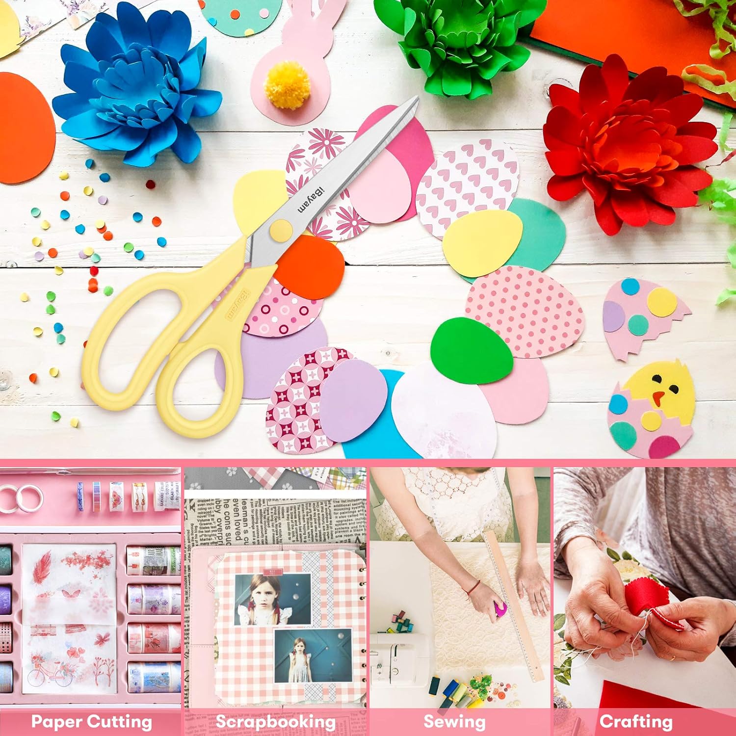 - iBayam 8-Inch Comfort Grip Scissors -- 3 special scissors are suitable for most items that need to be cut. It can also be used as a household scissors for cutting open frozen food bags ready for cooking. Convenient, sturdy, especially sharp scissors, very durable