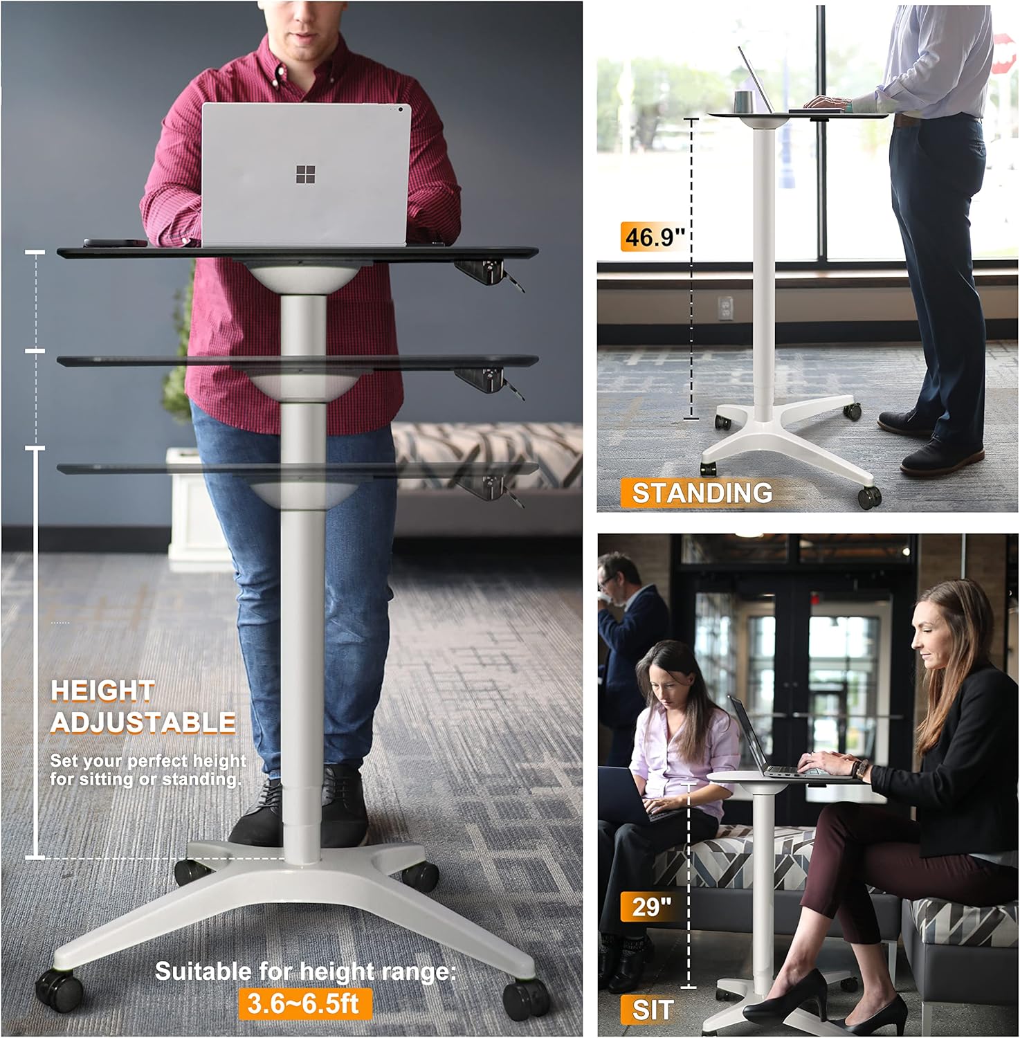 Pneumatic Adjustable Height Desk, Laptop Standing Desk, Rolling Sit-Stand Cart, Mobile Podium Portable Lectern for Home, Office& Classroom, 26" 19.3" Platform (29" to 46.9" H),White