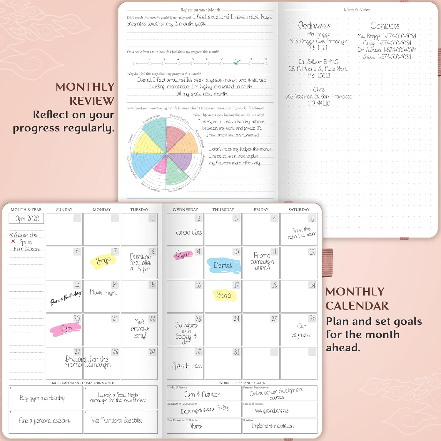 - STAY ORGANIZED & BOOST PRODUCTIVITY – Use spacious monthly calendars and weekly pages to set goals, tasks, deadlines, and appointments. Easily manage your schedule with convenient 6 AM to 9 PM time slots.