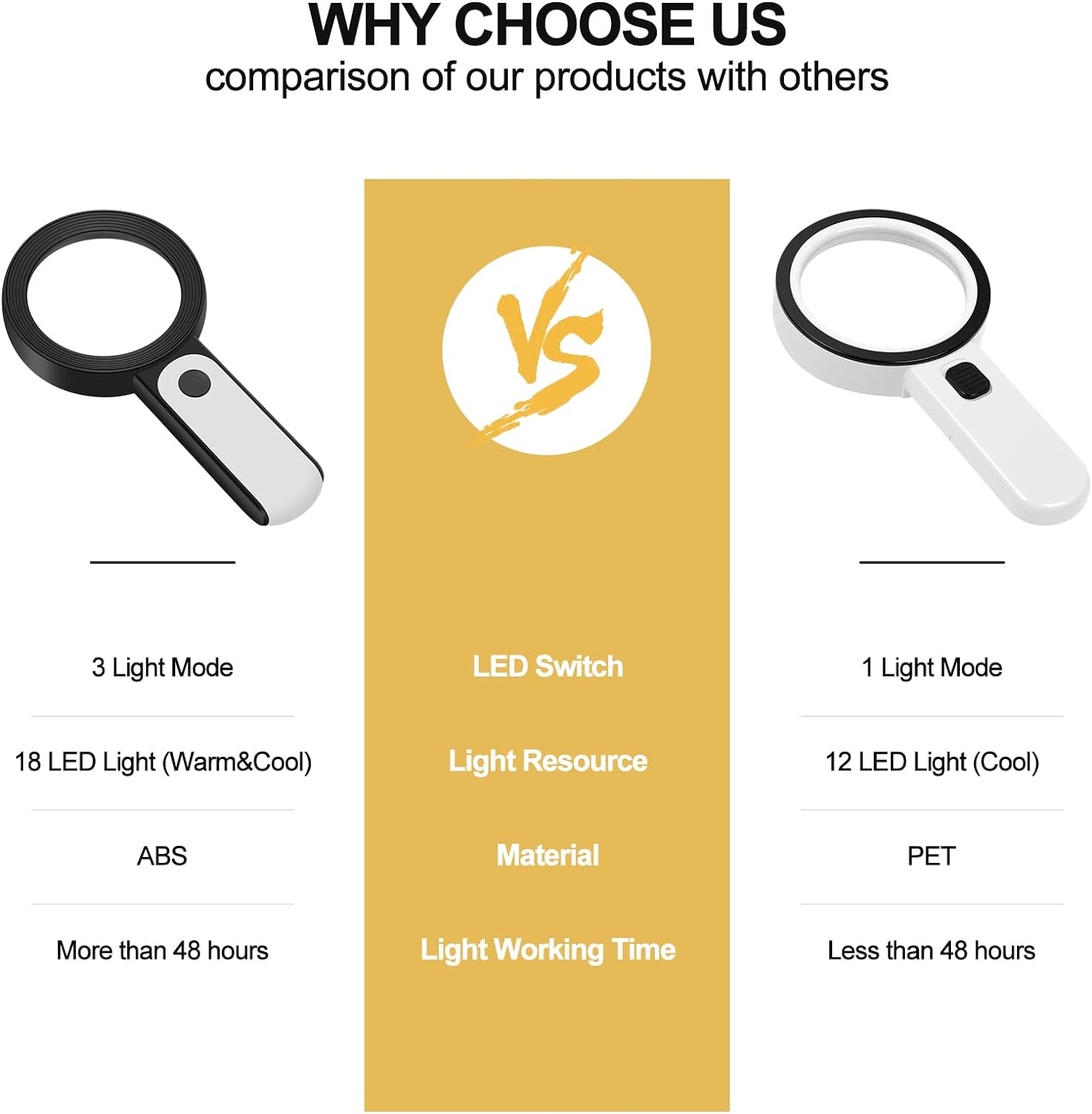 JMH Magnifying Glass with Light, 30X Handheld Large 18LED Cold and Warm Light with 3 Modes, Illuminated Magnifier for Seniors Reading, Inspection, Coins, Jewelry, Exploring