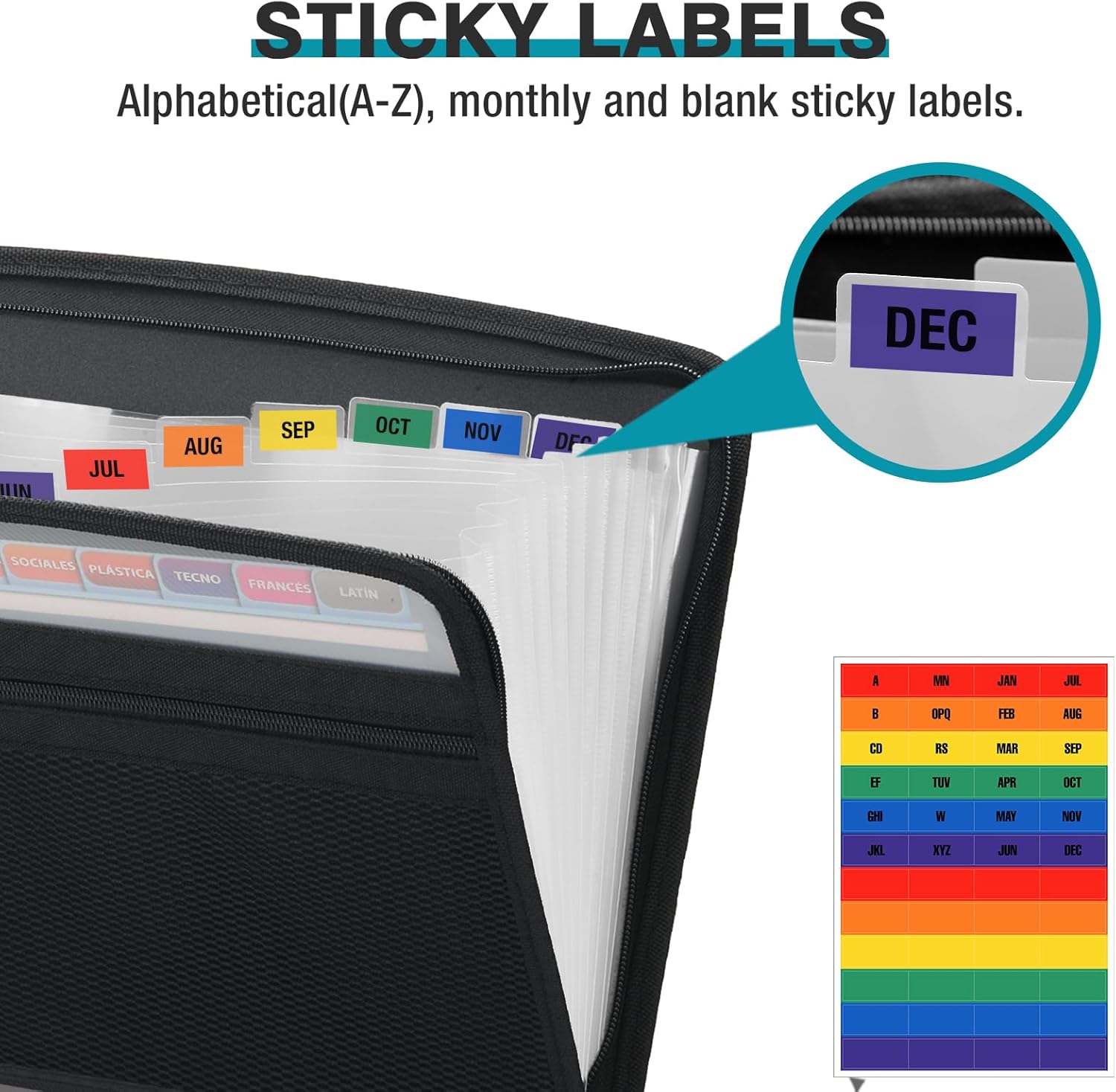 - TABS WITH STICKY INDEX: This accordion file comes with A-Z & Monthly text label for easy subdivision, office files can be neatly sorted by the compartment and users can locate their files accurately by the top divider tabs to save time