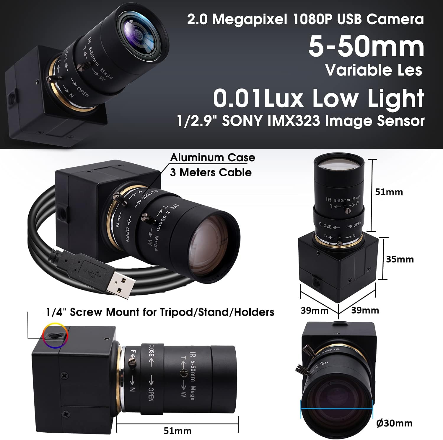SVPRO USB Web Camera 1080P Full HD Webcam with Zoom Lens, 5-50mm Telephoto Webcam Manual Focus with Sony IMX323 Sensor, H.264 0.01lux Low Light Camera for Industrial Machine Vision,UVC Free Drive
