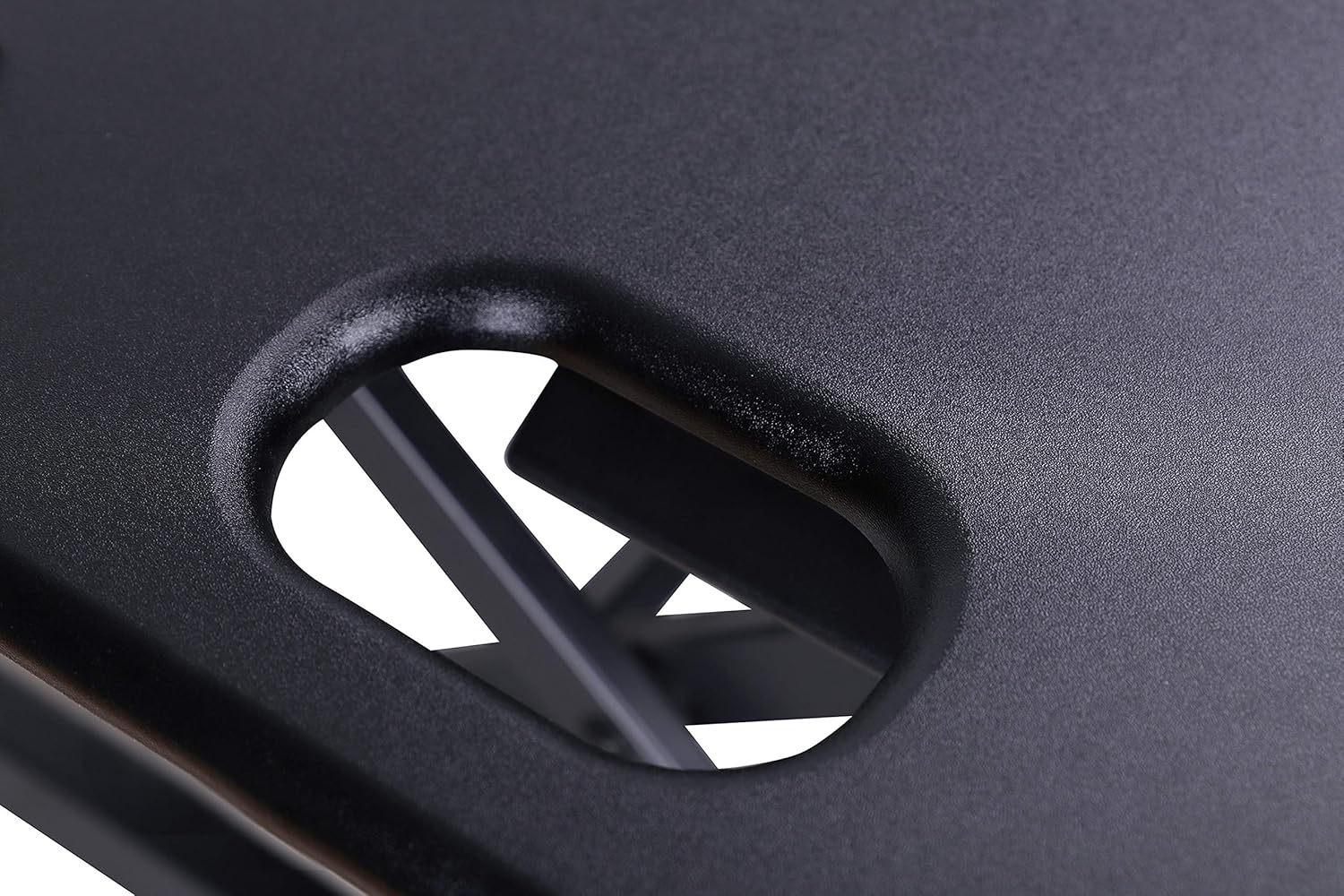 - RETRACTABLE ERGONOMIC KEYBOARD TRAY: Keyboard tray extends and retracts while keeping a 4.5" spacing between keyboard tray and desktop which helps keep arms and wrists in an ergonomic position to prevent neck and back strain while sitting or standing.