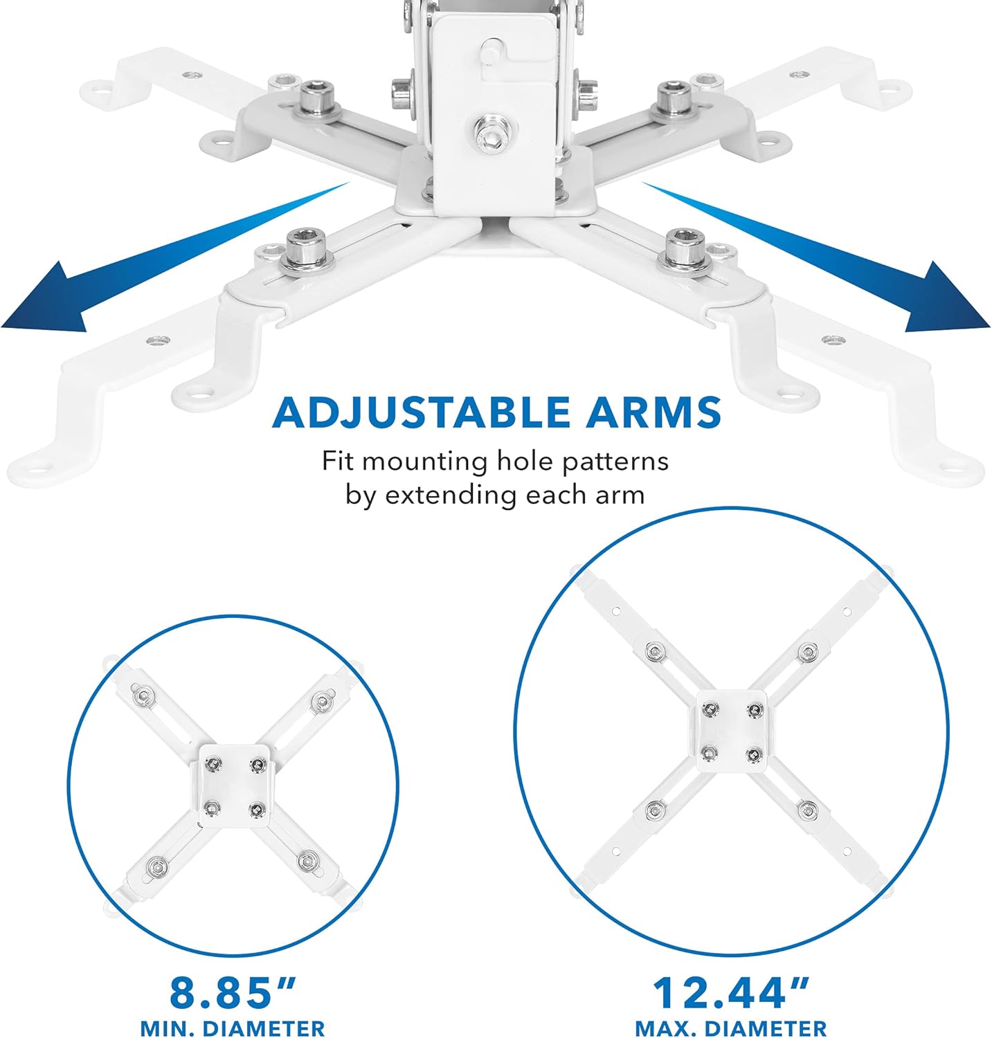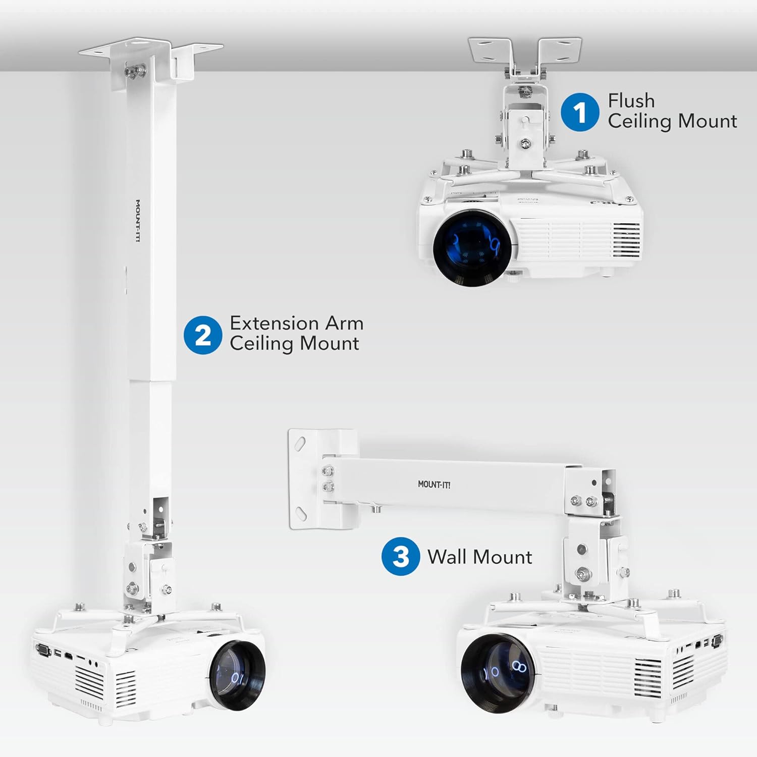Mount-It! Wall or Ceiling Projector Mount with Universal LCD/DLP Mounting for Epson, Optoma, Benq, ViewSonic Projectors, 44lb Load Capacity, White