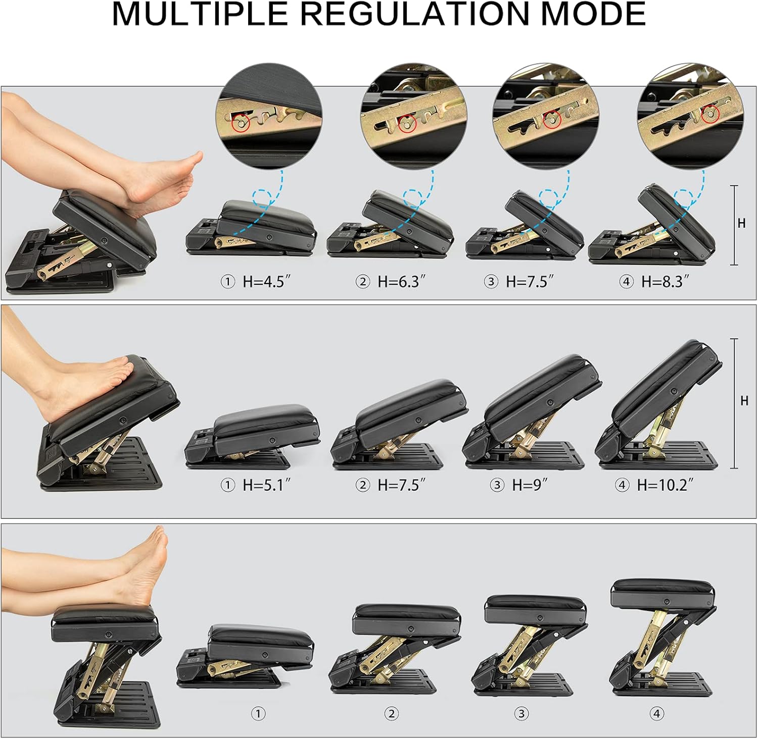 - 🦶【Adjustable Height and Angle】:The foot rest has 4-level adjustable gear functions. You can adjust the height and angle of the under desk footrest according to your own conditions. Very easy to find the perfect position to suit your needs.