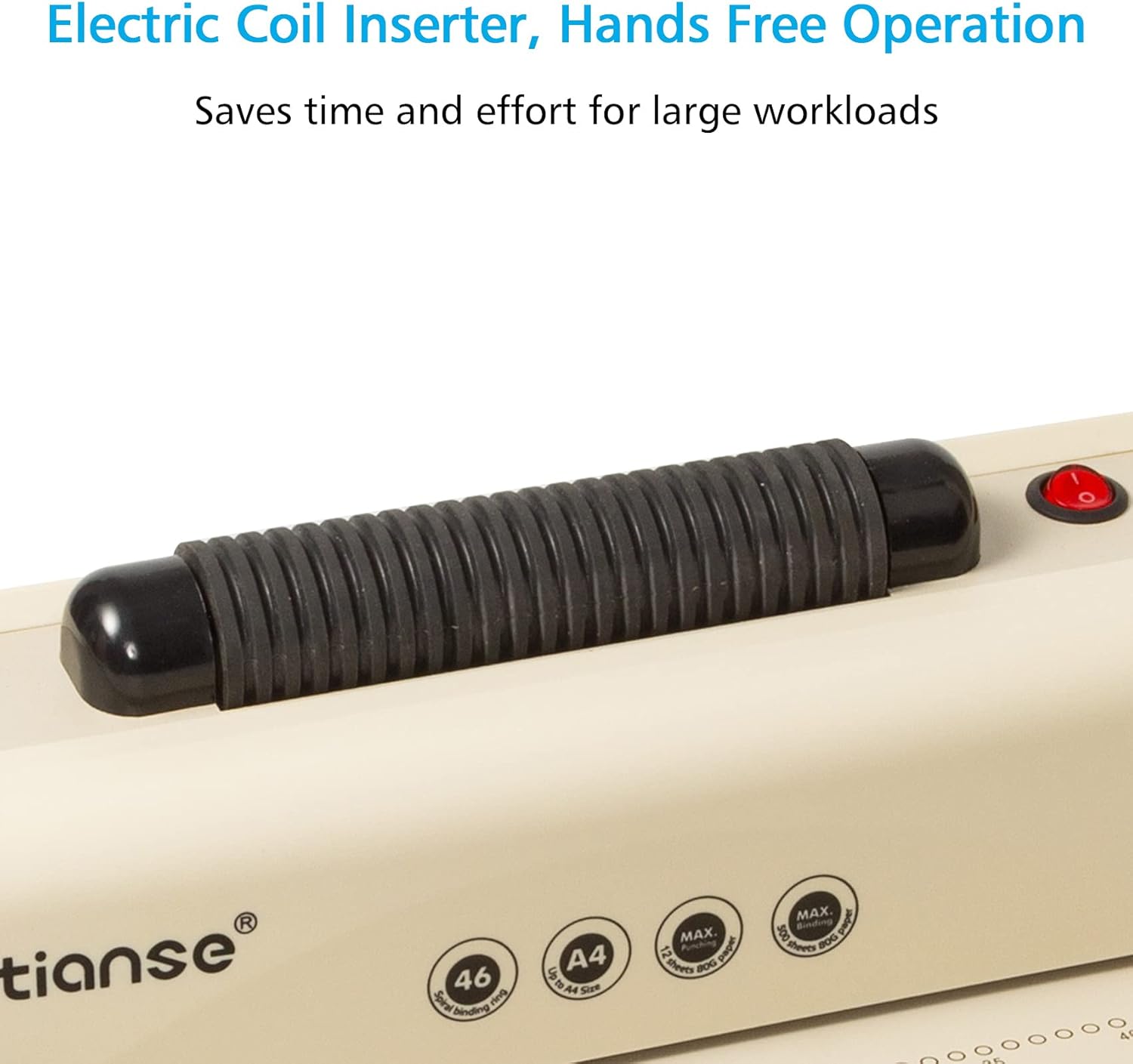 TIANSE Binding Machine, Spiral Coil Binder Machine, Electric Coil Inserter, 15 Sheets Punch Capacity, Suit for Letter Size / A4 / A5 Book Maker, with 100pcs 5/16'' Plastic Coil Binding Spines & Plier